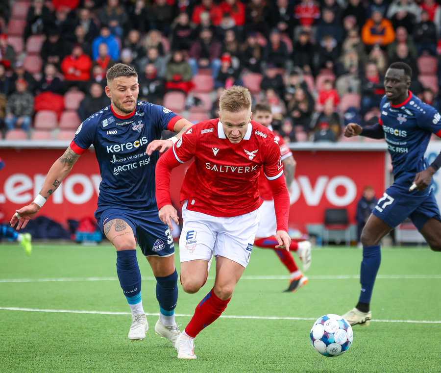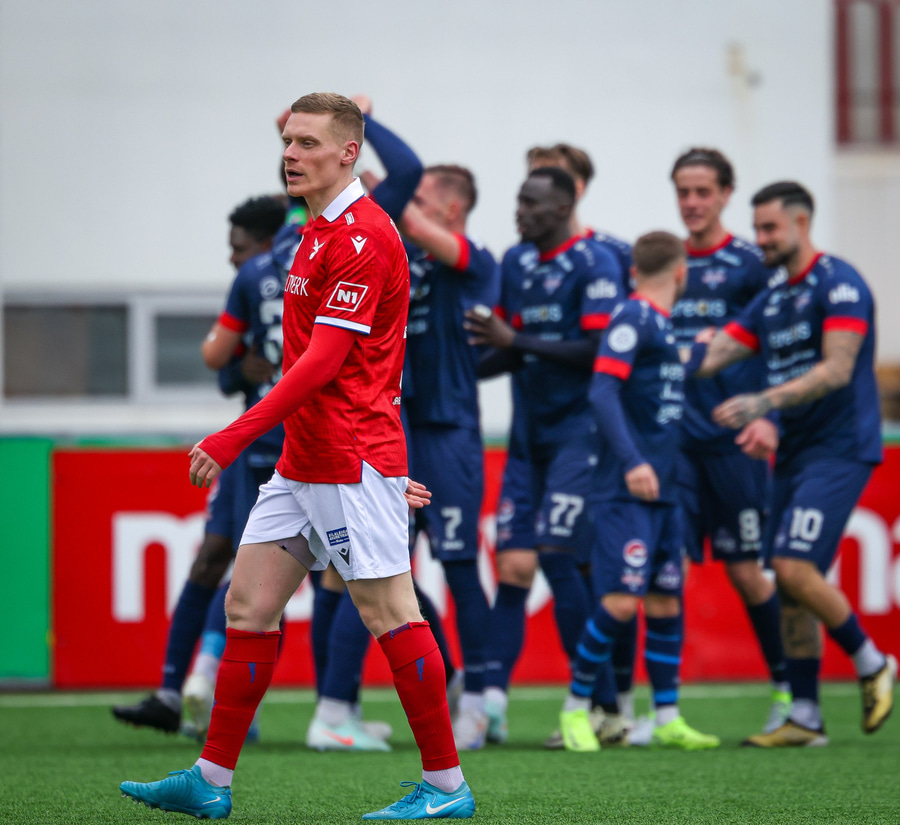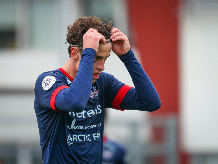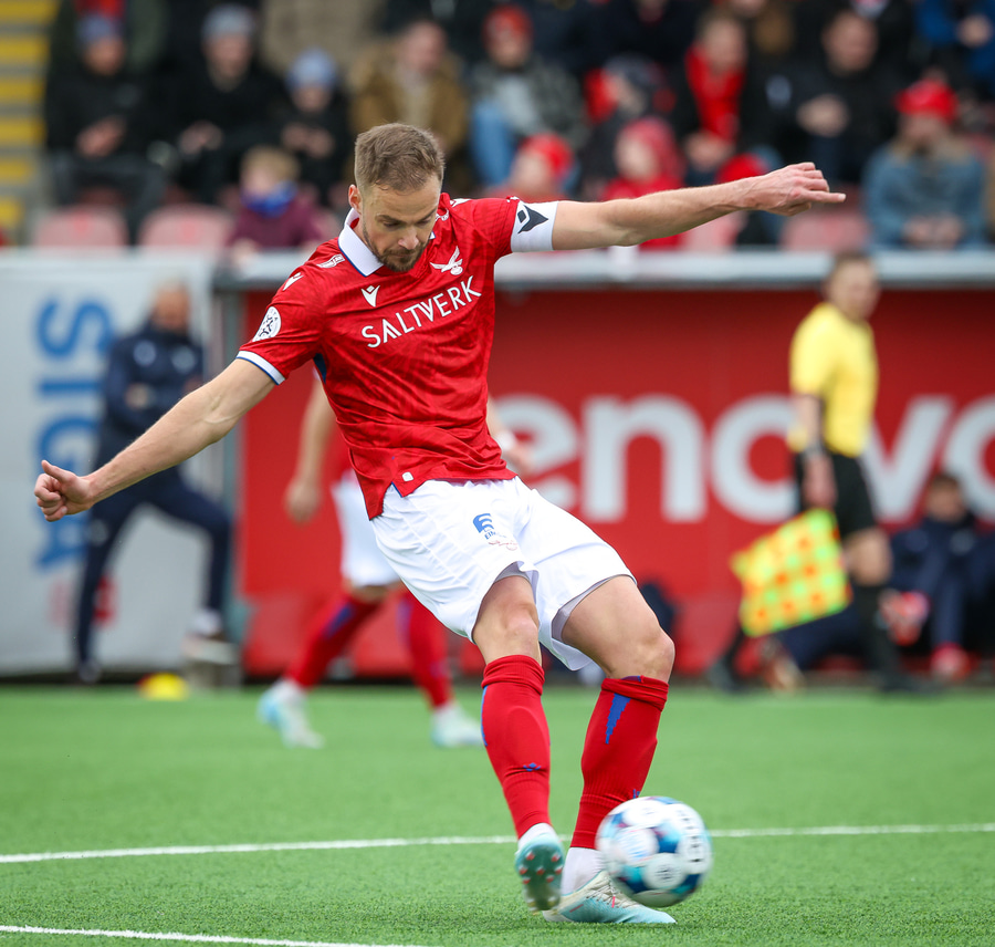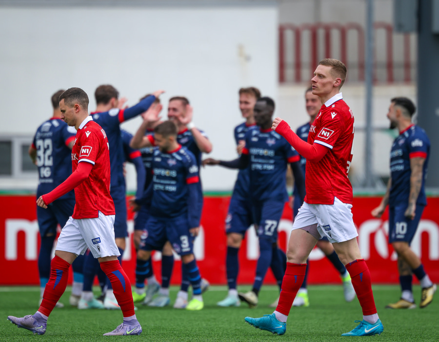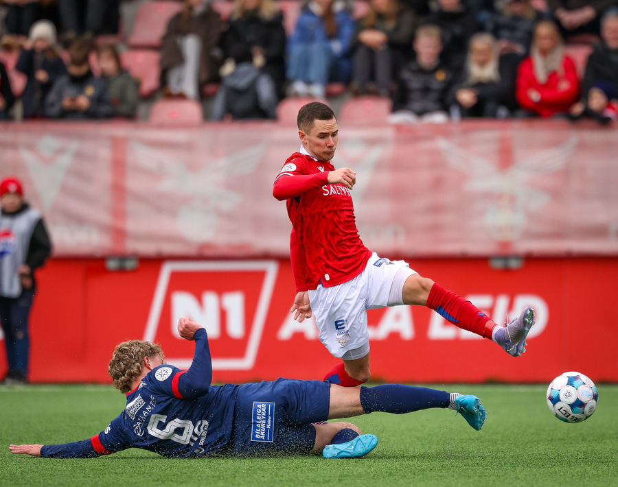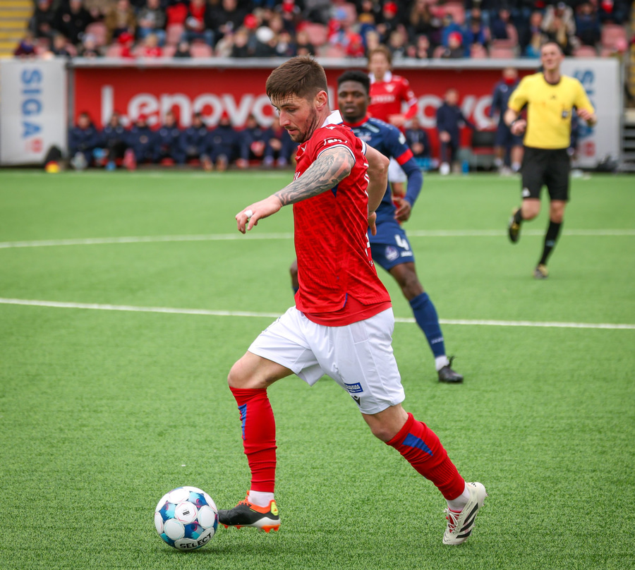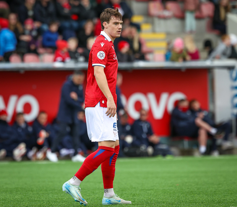 Anton Kralj kemst upp vinstri kantinn eftir flott samspil við Jeppe Pedersen. Anton á fína fyrirgjöf inn á Daða Berg sem nær skoti, sem berst aftur Anton. Hann setur boltann fyrir, þar sem Sergine Fall er mættur með seinni skipunum en skot hans frekar auðvelt fyrir Stefán Þór.