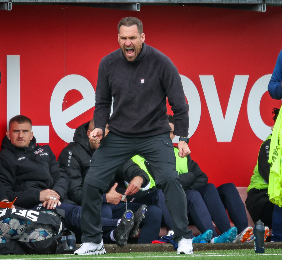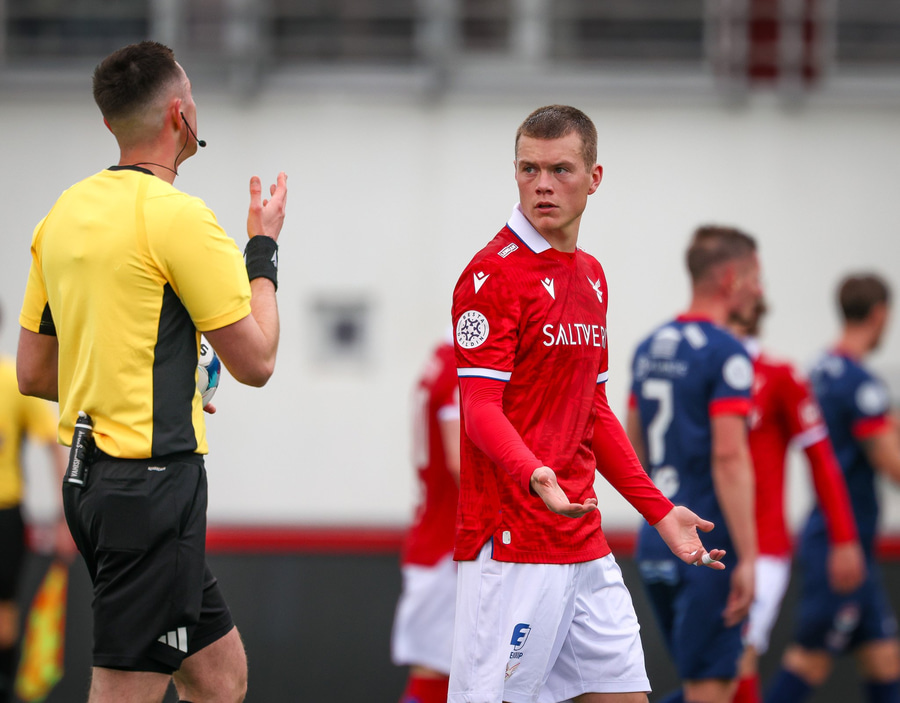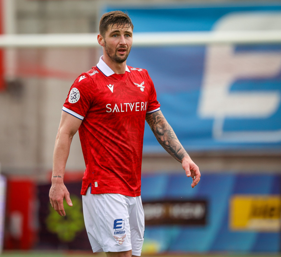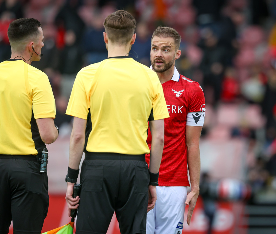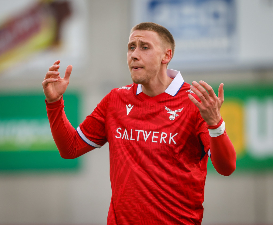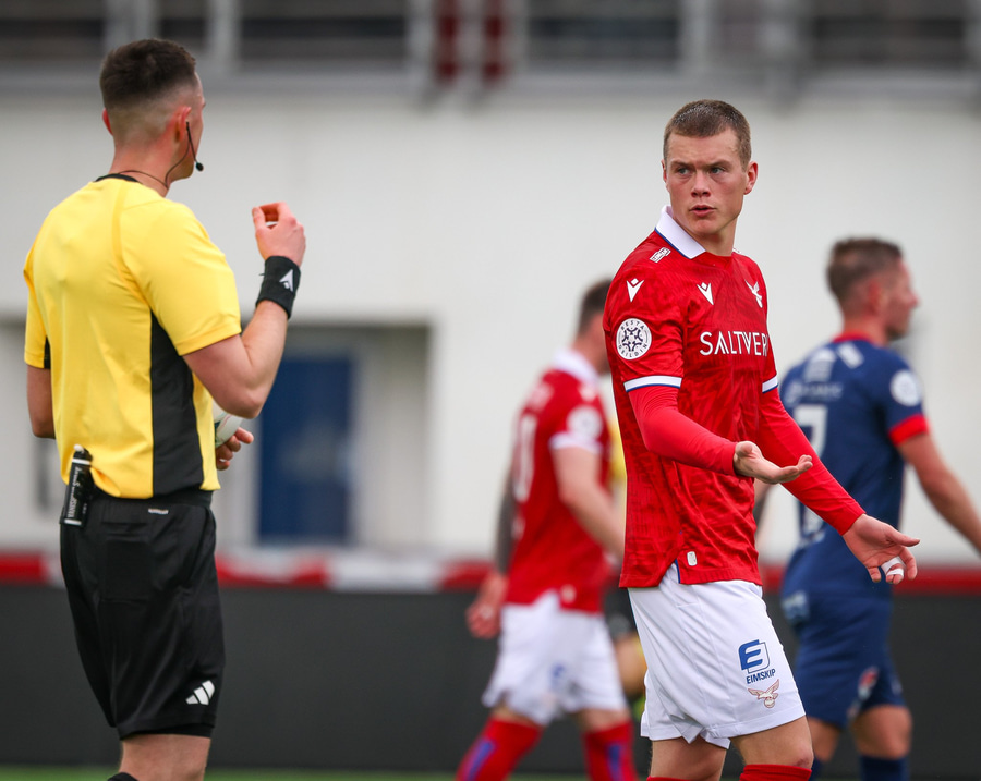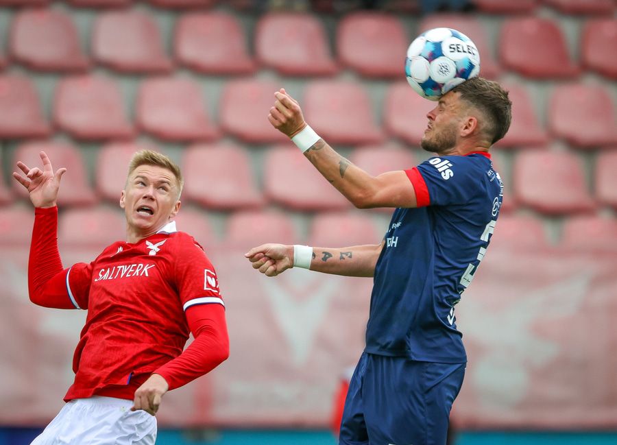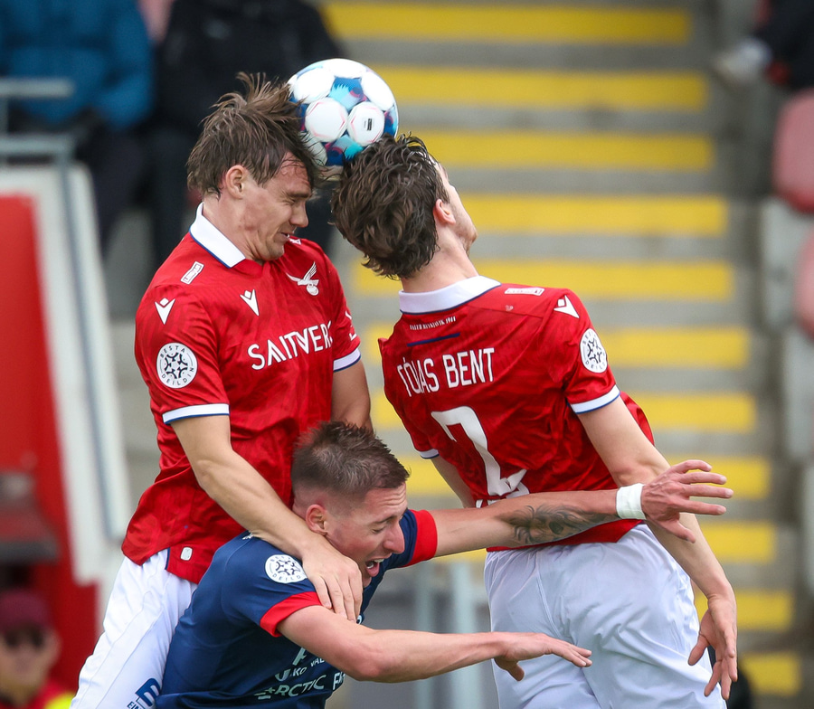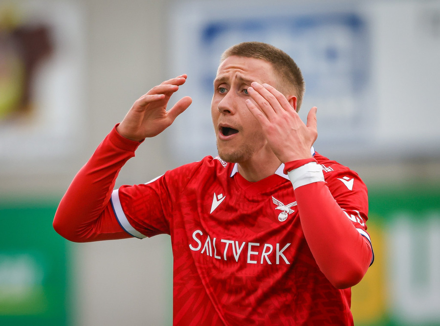 Anton Kralj kemst upp vinstri kantinn eftir flott samspil við Jeppe Pedersen. Anton á fína fyrirgjöf inn á Daða Berg sem nær skoti, sem berst aftur Anton. Hann setur boltann fyrir, þar sem Sergine Fall er mættur með seinni skipunum en skot hans frekar auðvelt fyrir Stefán Þór.
