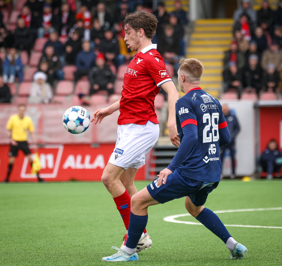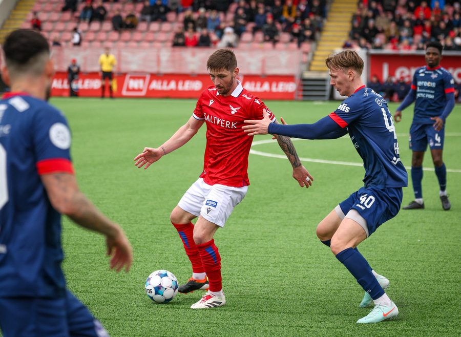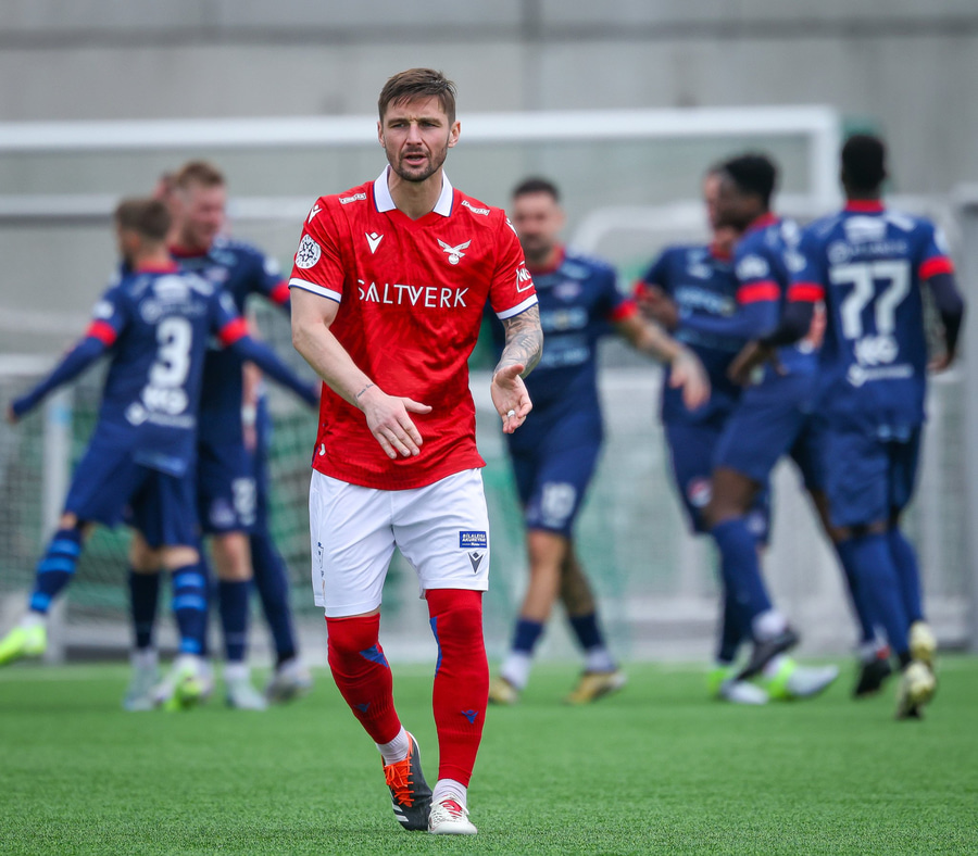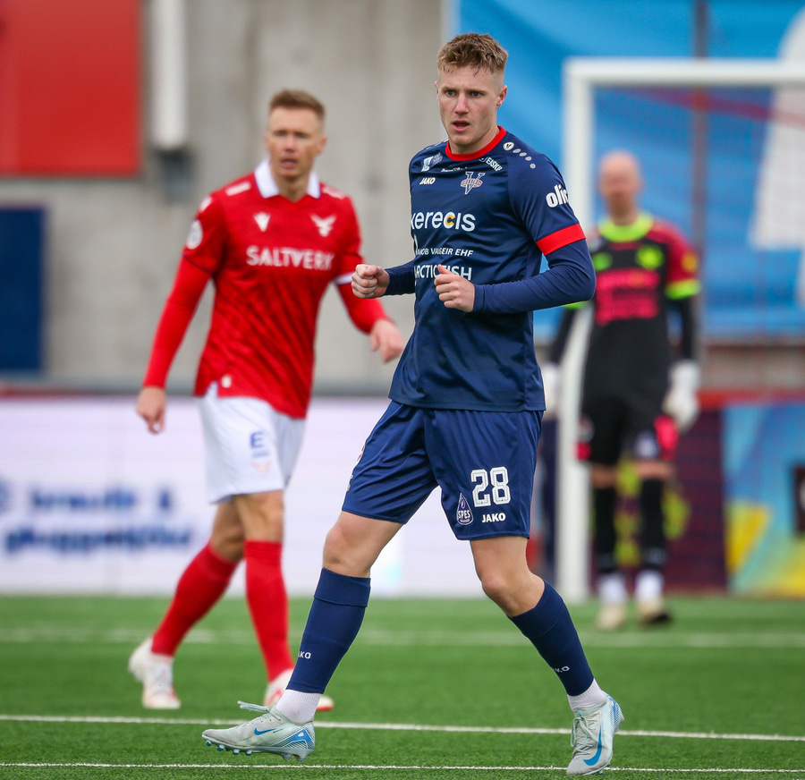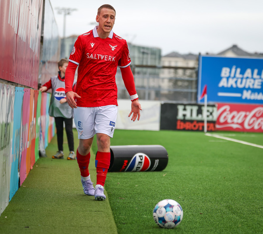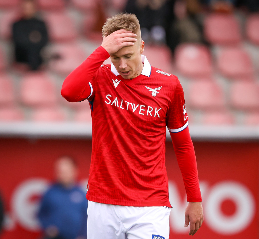 Tryggvi Hrafn nær flottu skoti með vinstri sem smellur í innanverðri stönginni. Boltinn berst til Albin Skoglund vinstra megin við markið sem á þéttingsfast skot með hægri fæti á markið, en Guy Smit nær að blaka boltanum í burtu. Þarna skall hurð nærri hælum!