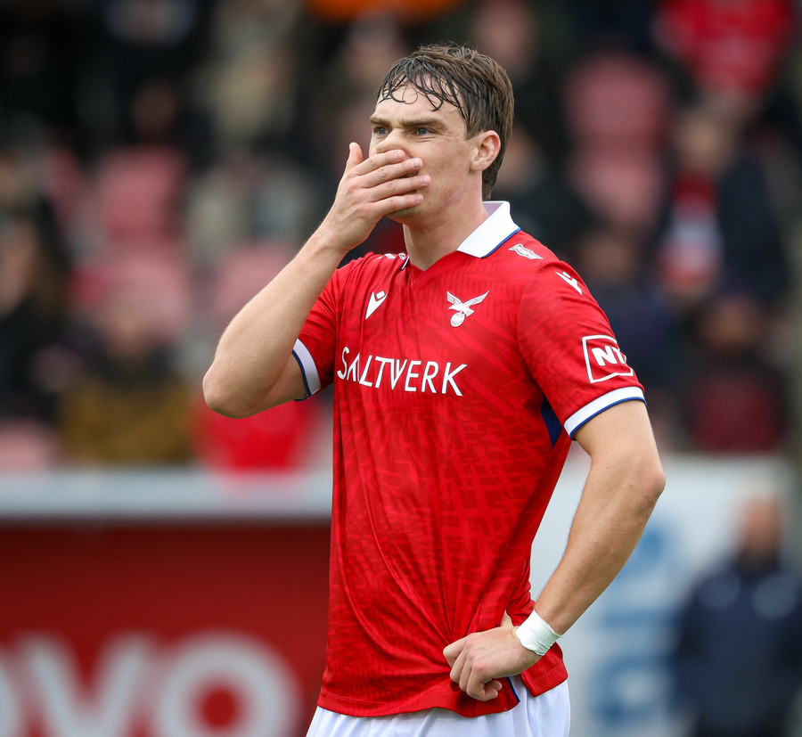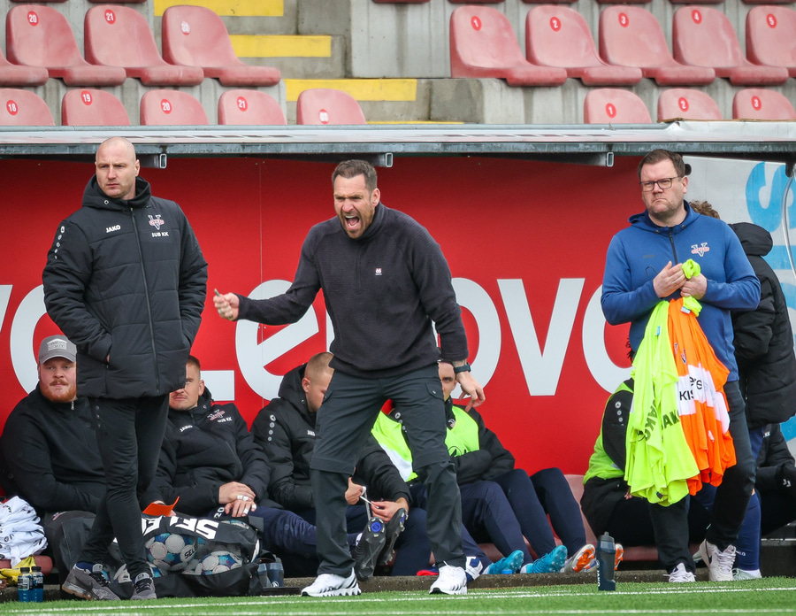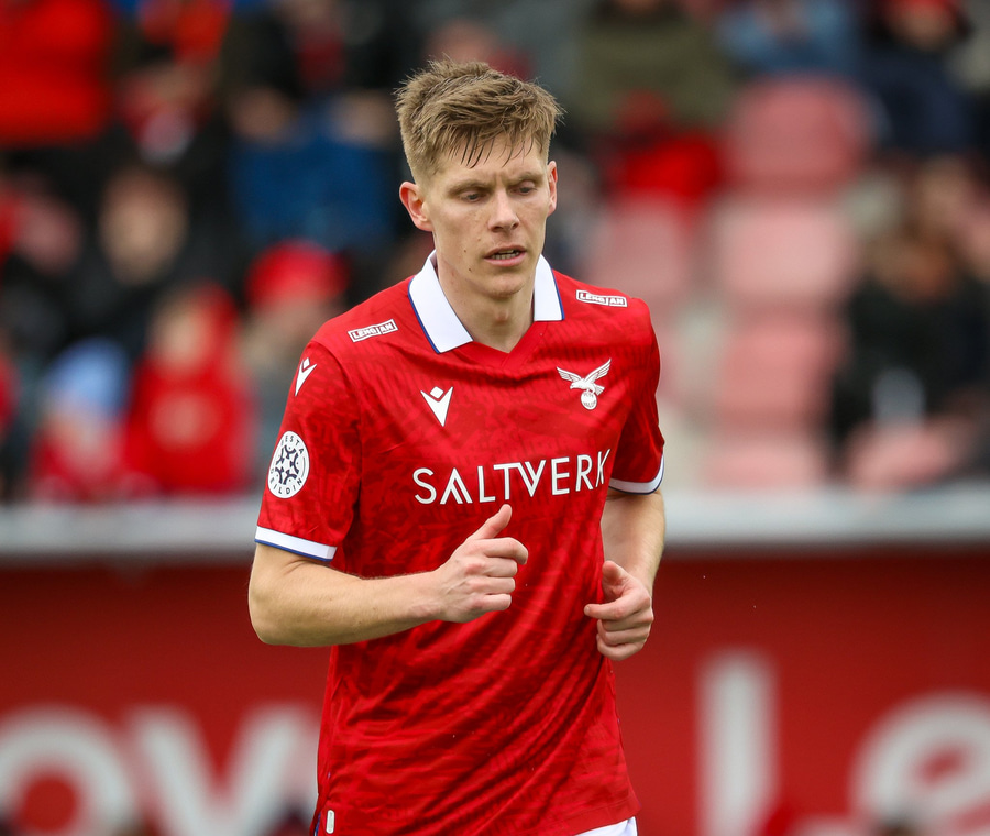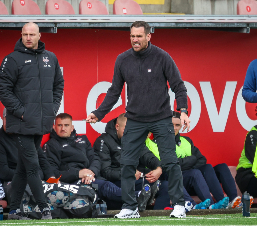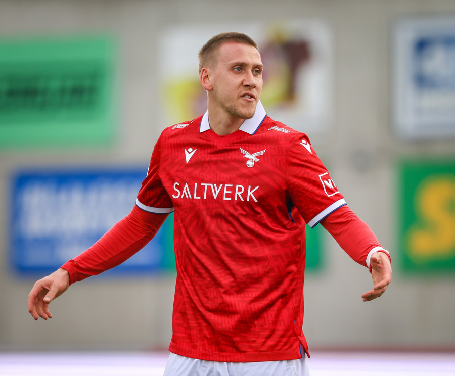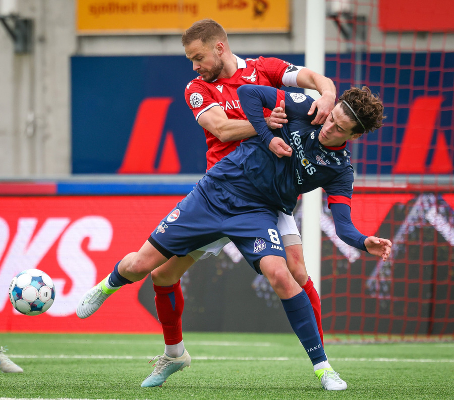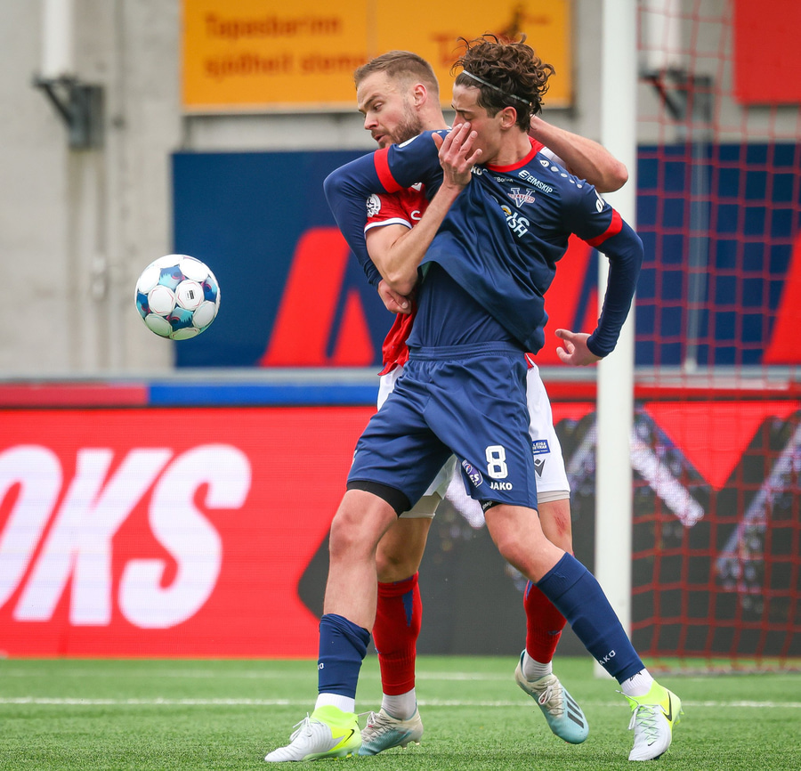 Tryggvi Hrafn nær flottu skoti með vinstri sem smellur í innanverðri stönginni. Boltinn berst til Albin Skoglund vinstra megin við markið sem á þéttingsfast skot með hægri fæti á markið, en Guy Smit nær að blaka boltanum í burtu. Þarna skall hurð nærri hælum!