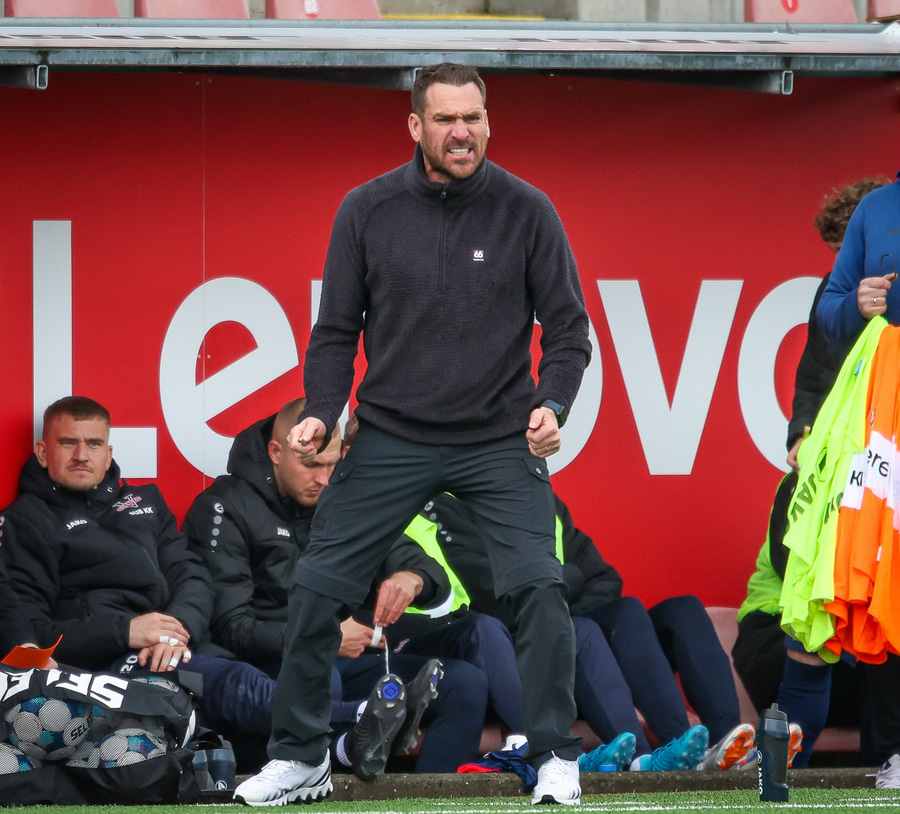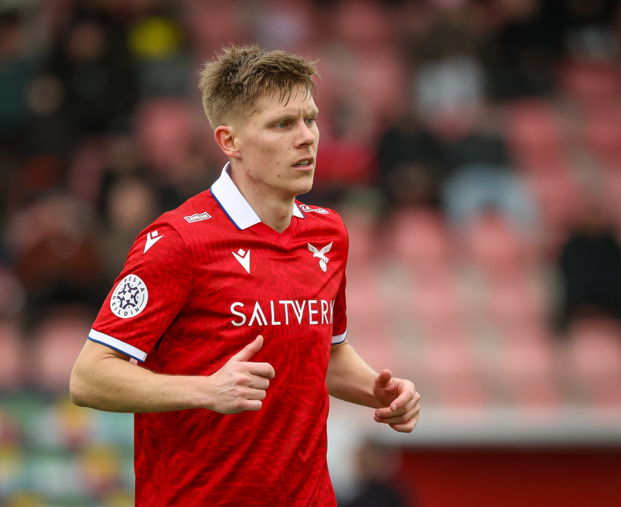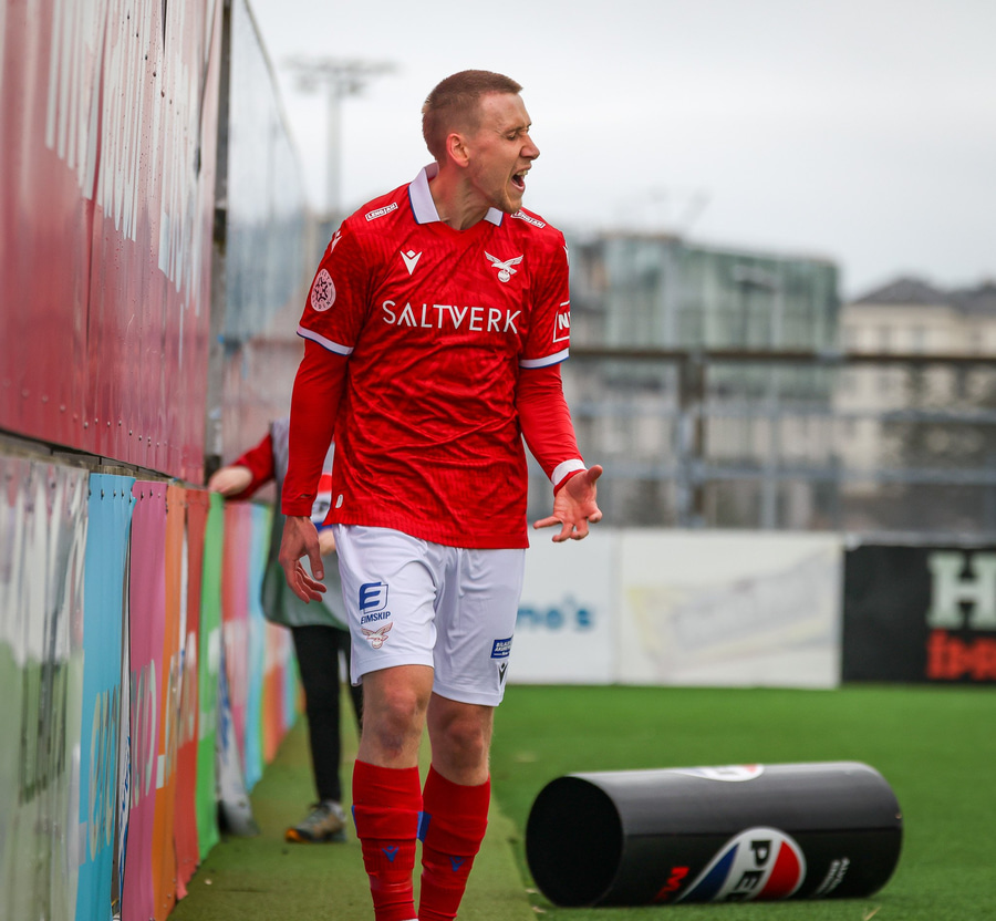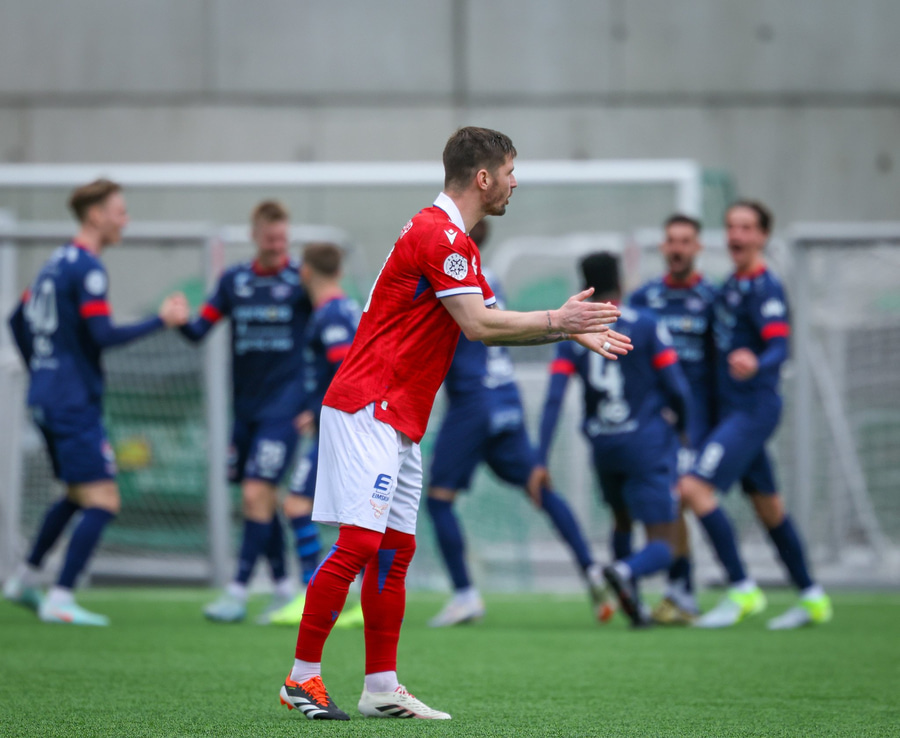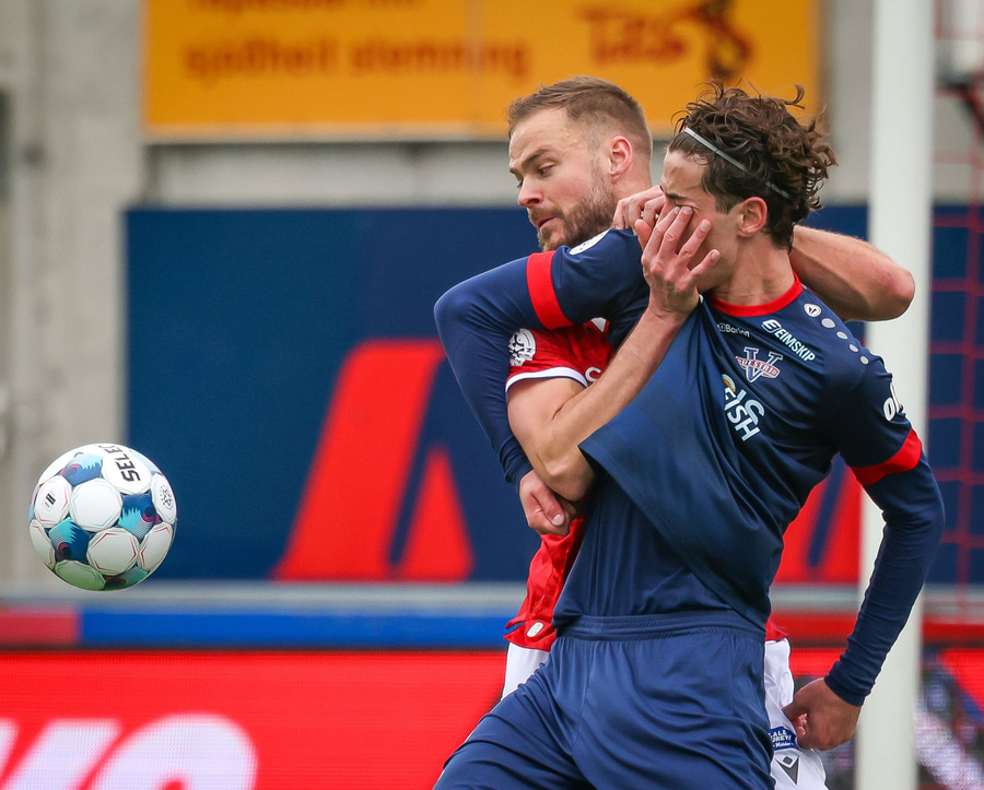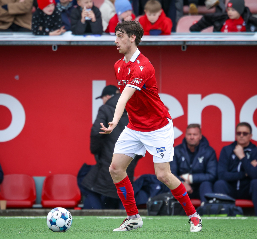 Tryggvi Hrafn nær flottu skoti með vinstri sem smellur í innanverðri stönginni. Boltinn berst til Albin Skoglund vinstra megin við markið sem á þéttingsfast skot með hægri fæti á markið, en Guy Smit nær að blaka boltanum í burtu. Þarna skall hurð nærri hælum!