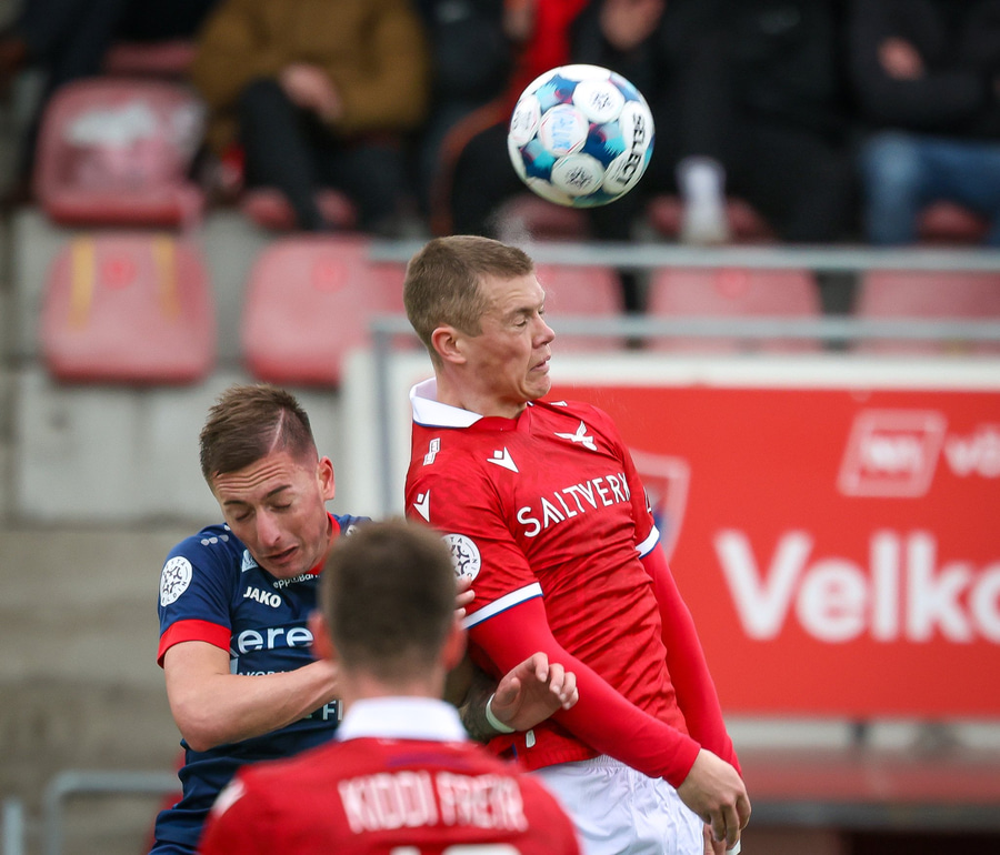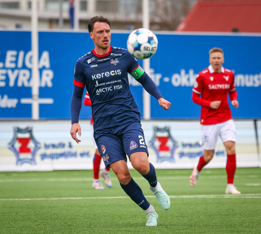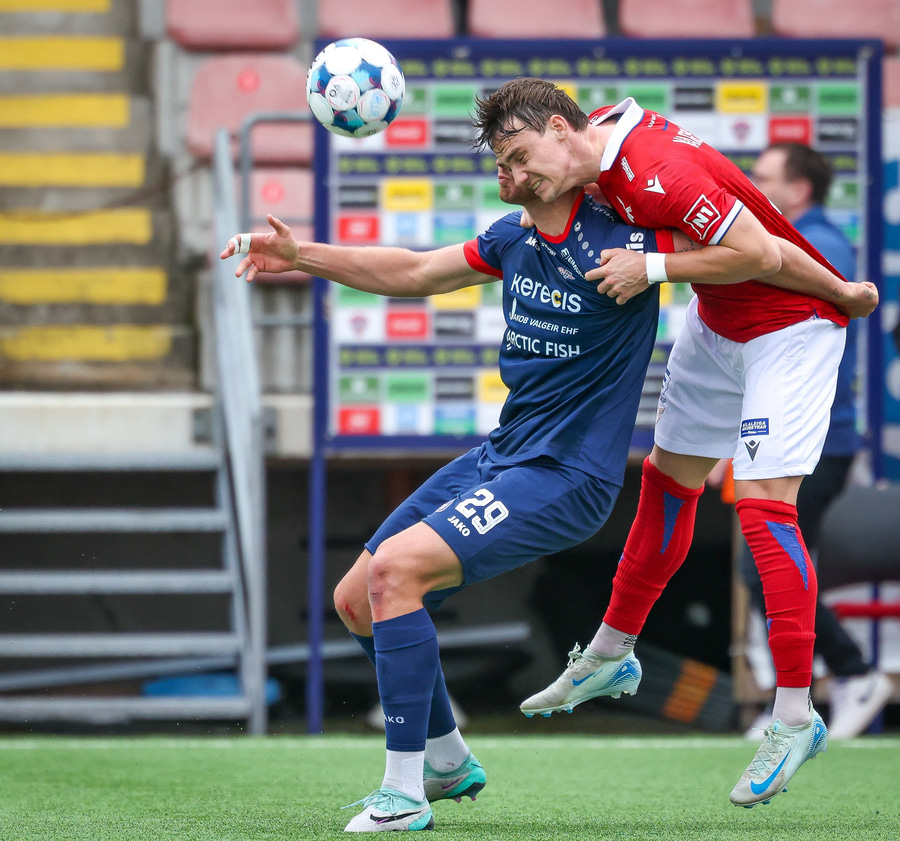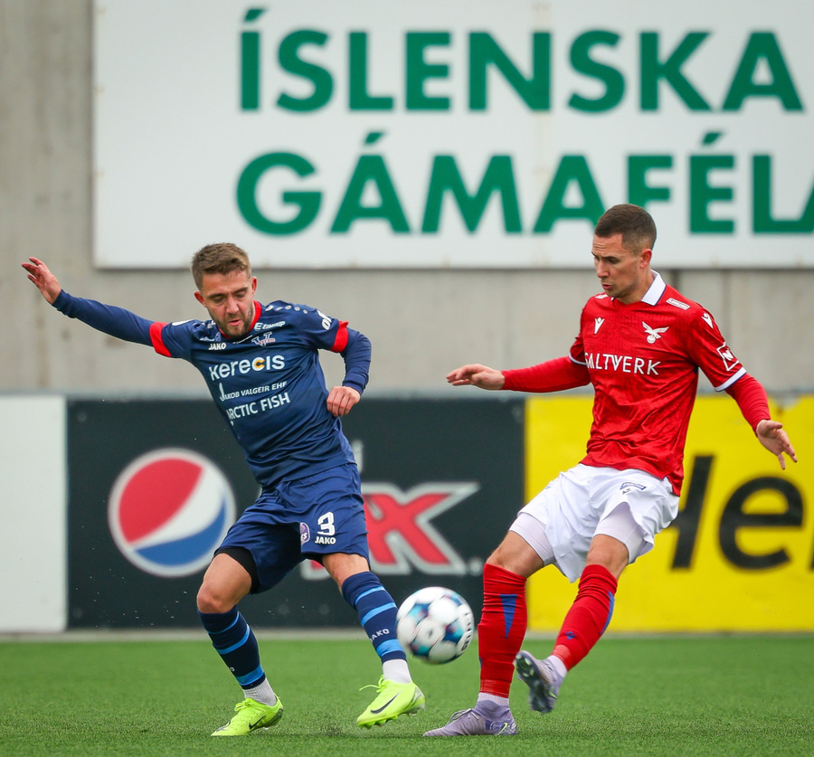Birkir Heimis á góða fyrirgjöf sem Anton Kralj rétt nær að skalla í horn. Birkir tekur sjálfur hornið en það er ekki nógu gott til að valda usla.