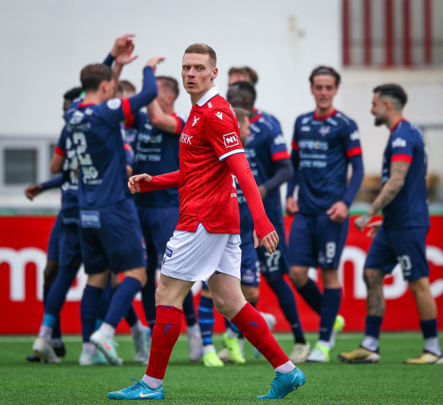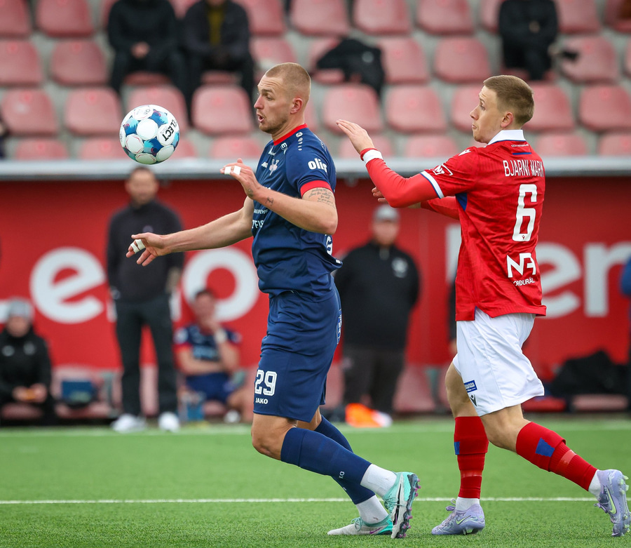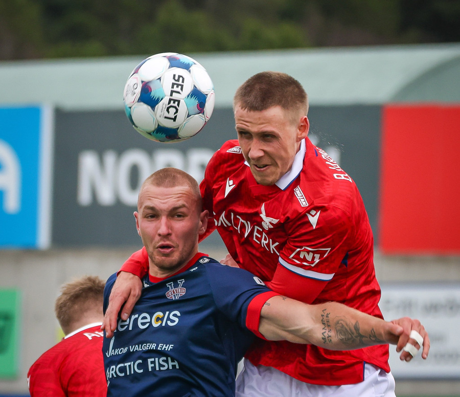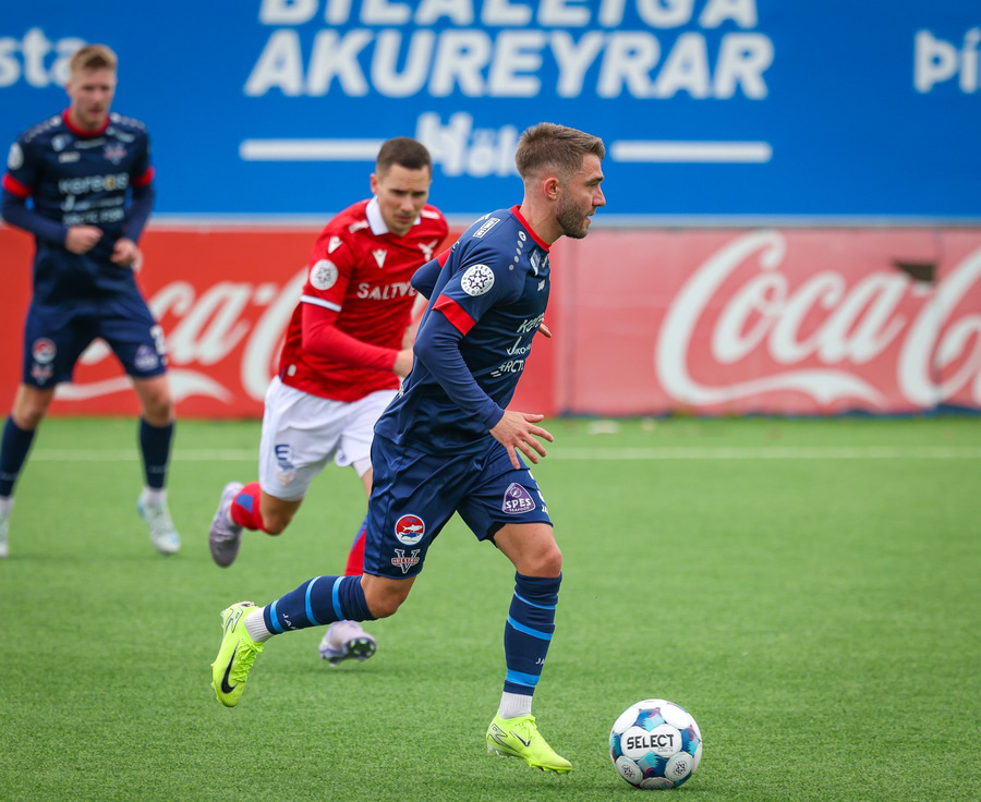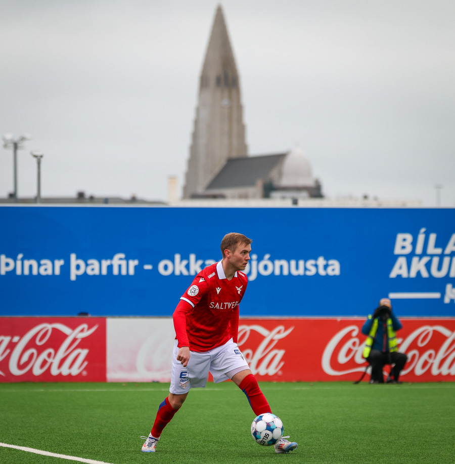 Birkir Heimis á góða fyrirgjöf sem Anton Kralj rétt nær að skalla í horn. Birkir tekur sjálfur hornið en það er ekki nógu gott til að valda usla.