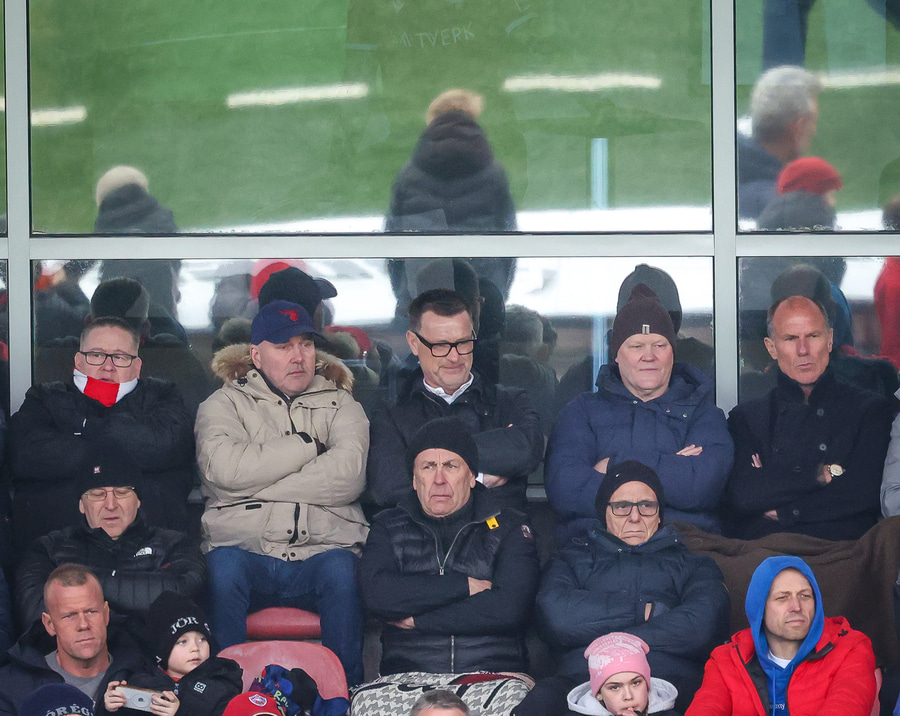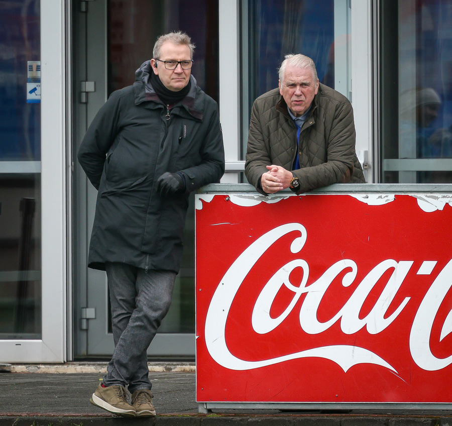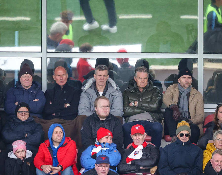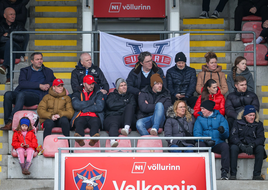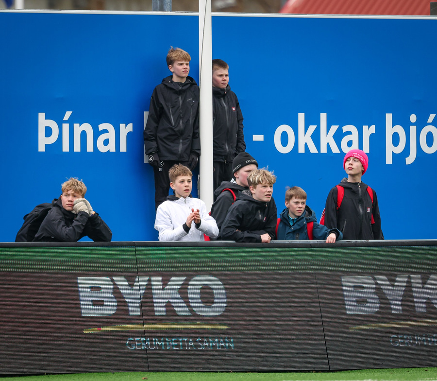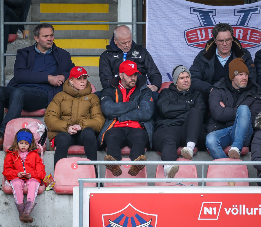 Undirritaður hitti þá Benedikt Bóas, Tómas Þór og Jóa Má fyrir utan völlinn áðan og það lá vel á þeim. Þá sitja þeir Flosi Eiríksson, formaður knattspyrnudeildar Breiðabliks, og Arnar Sveinn Geirsson, forseti leikmannasamtakanna, rétt fyrir neðan blaðamannastúkuna.