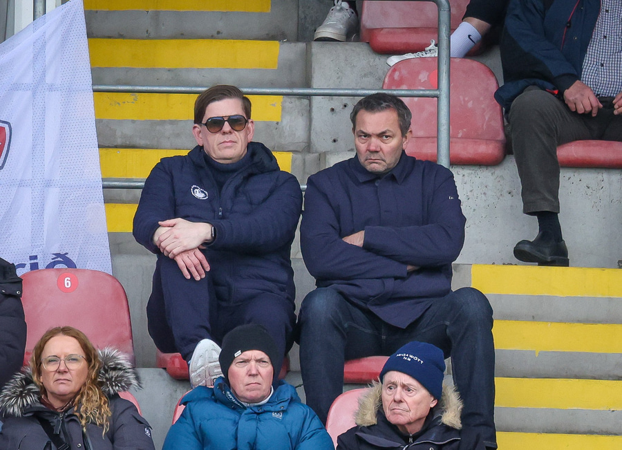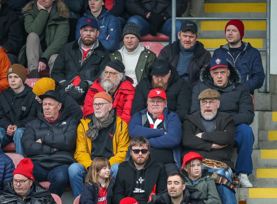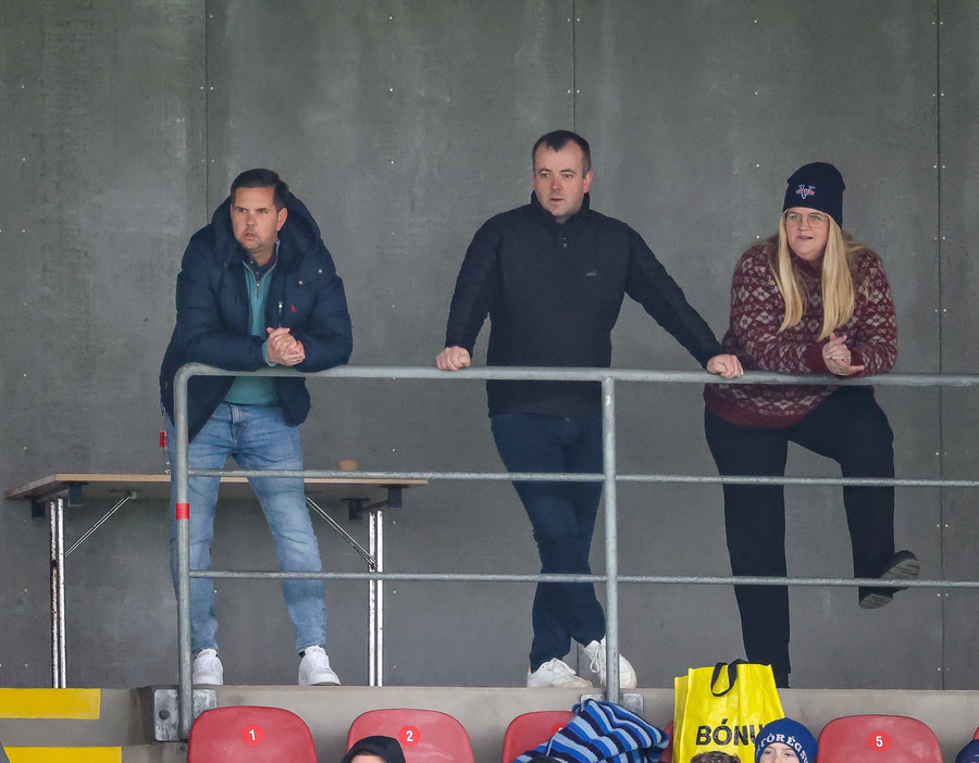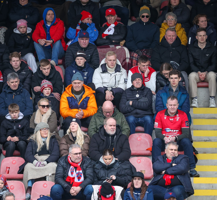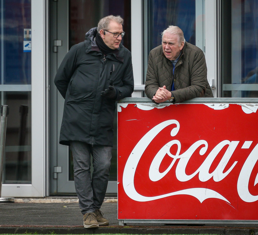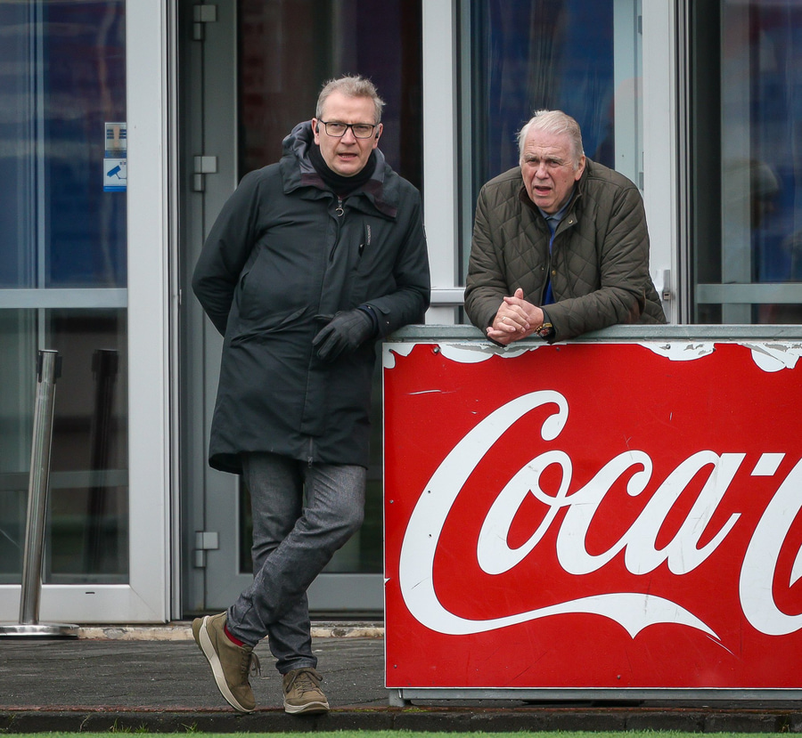 Undirritaður hitti þá Benedikt Bóas, Tómas Þór og Jóa Má fyrir utan völlinn áðan og það lá vel á þeim. Þá sitja þeir Flosi Eiríksson, formaður knattspyrnudeildar Breiðabliks, og Arnar Sveinn Geirsson, forseti leikmannasamtakanna, rétt fyrir neðan blaðamannastúkuna.