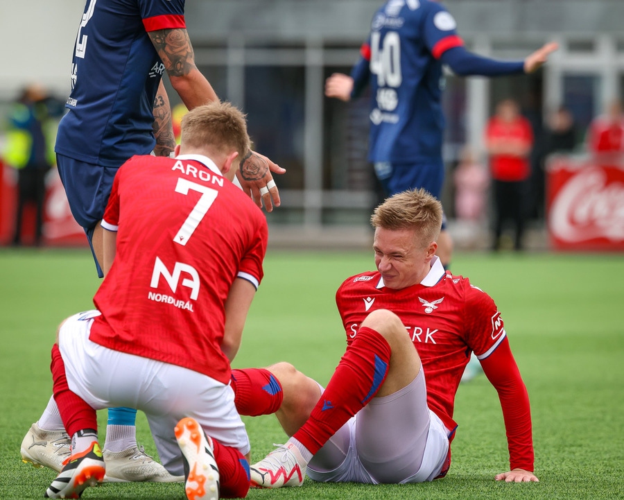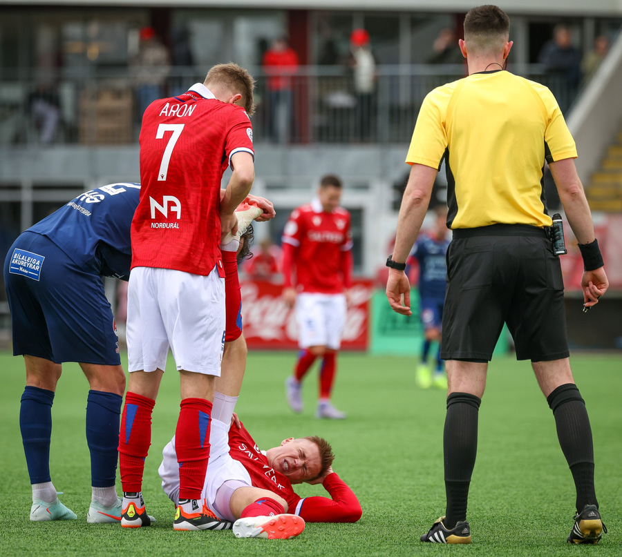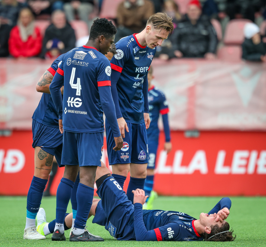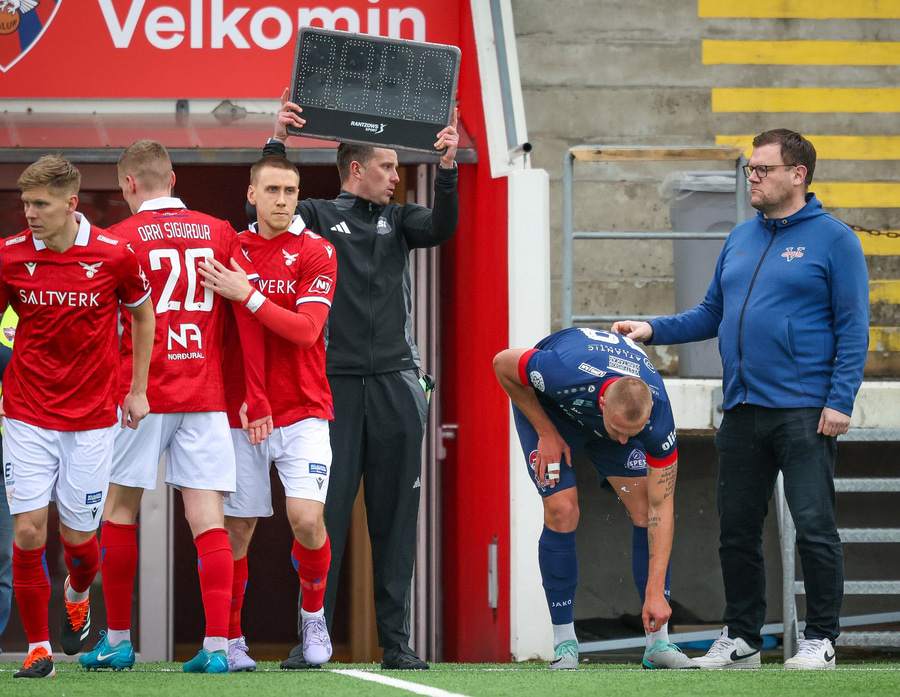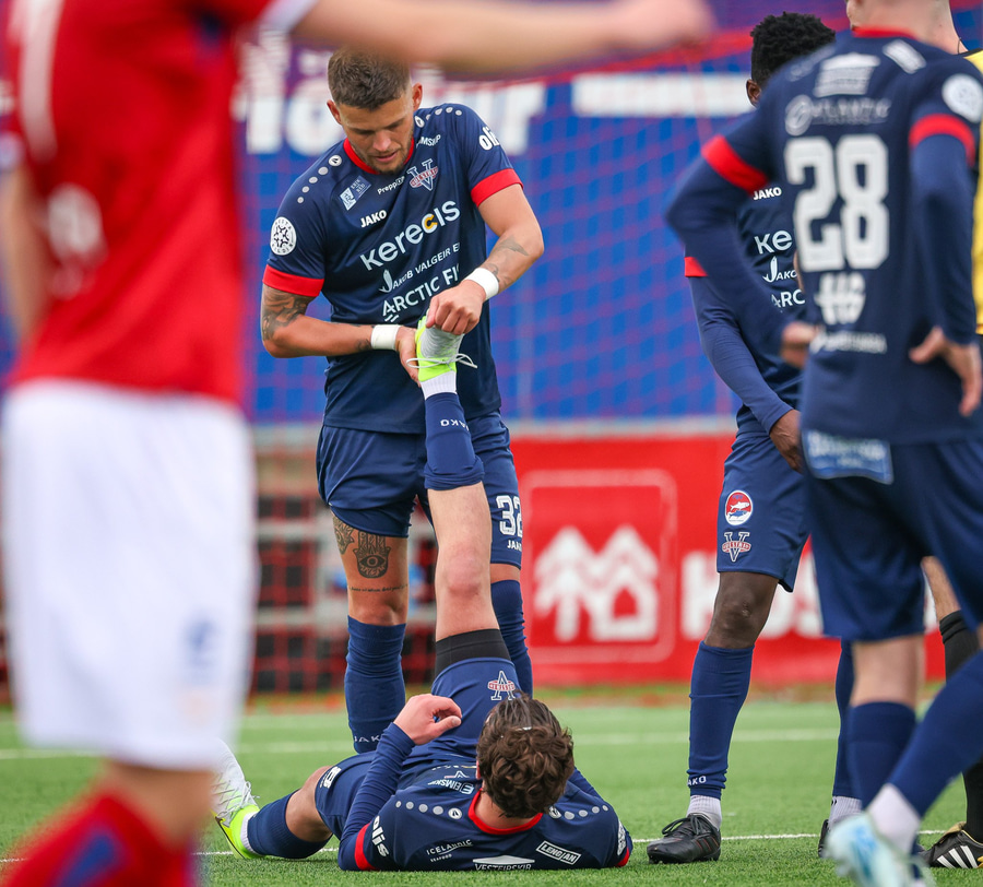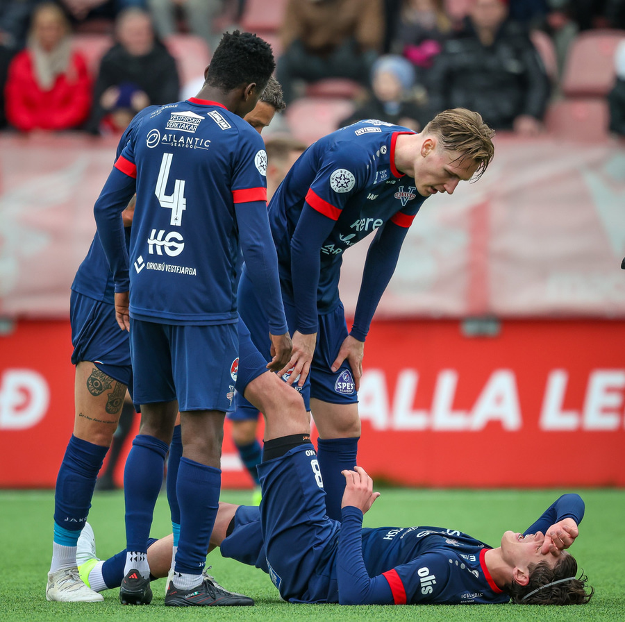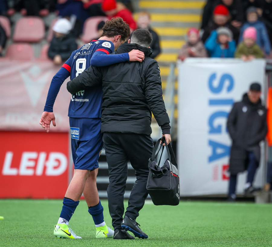 Lítið sést af Daða í seinni hálfleik en ekki góðar fréttir fyrir Vestramenn ef hann þarf að ljúka leik hérna.