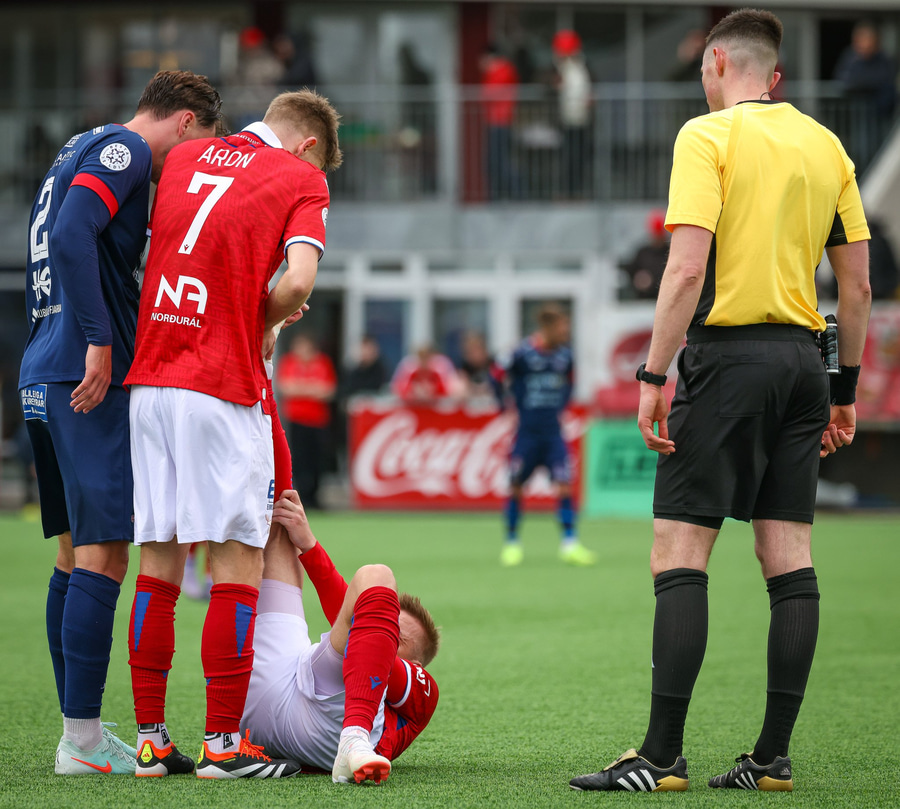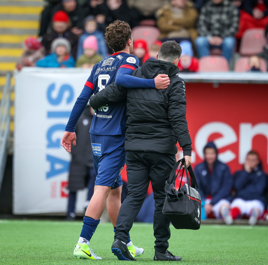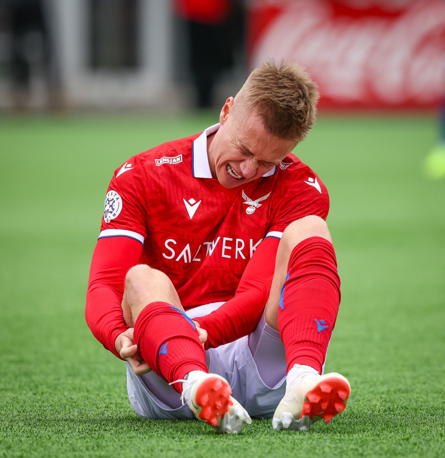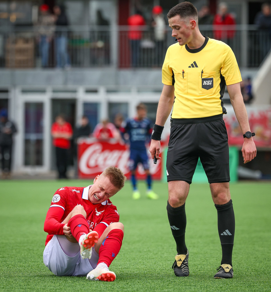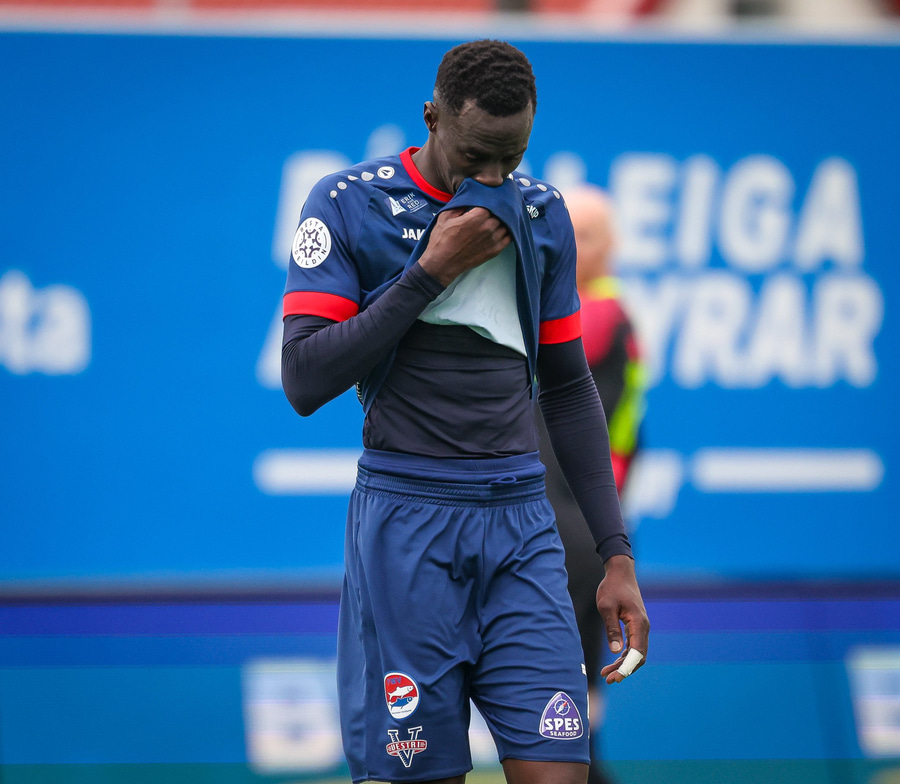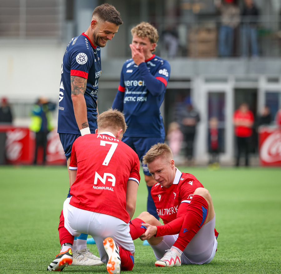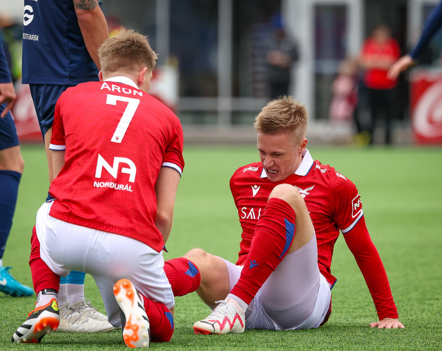 Lítið sést af Daða í seinni hálfleik en ekki góðar fréttir fyrir Vestramenn ef hann þarf að ljúka leik hérna.