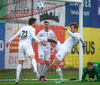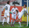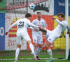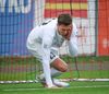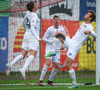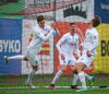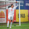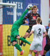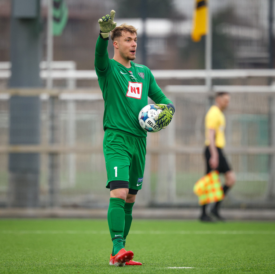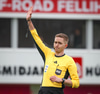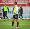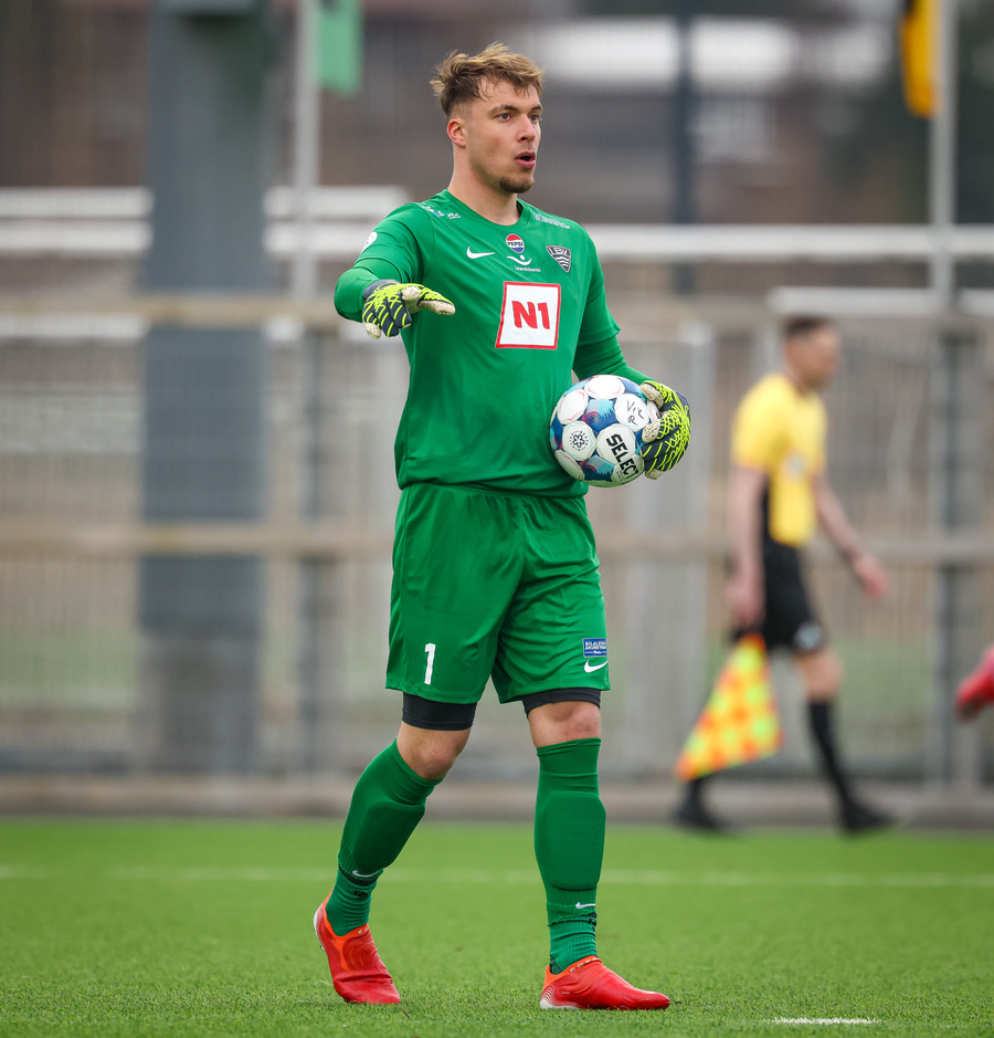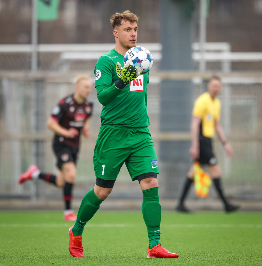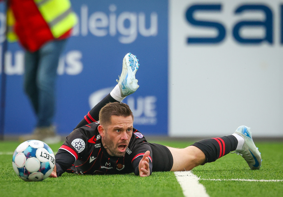 Frábær hornspyrna frá Gylfa ratar á kollinn á Gunnari Vatnhamar í teignum sem skallar boltann beint niður Upp hefst smá kraðak en boltinn að endingu í fang Marcel.