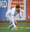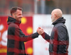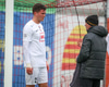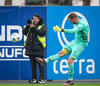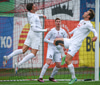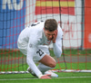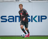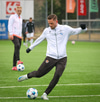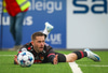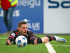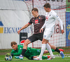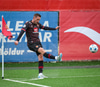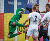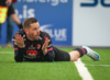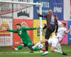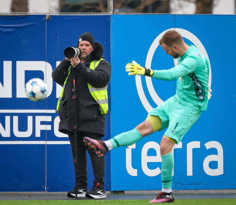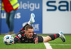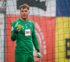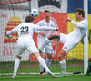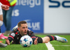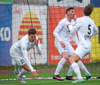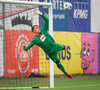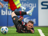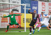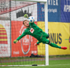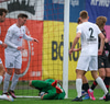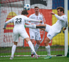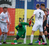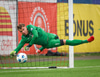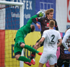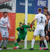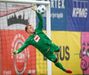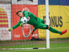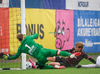 Smellhittir boltann sem virðist stefna beint í hornið vinstra megin á markinu. Marcel vel á verði og ver ekki síður glæsilega.