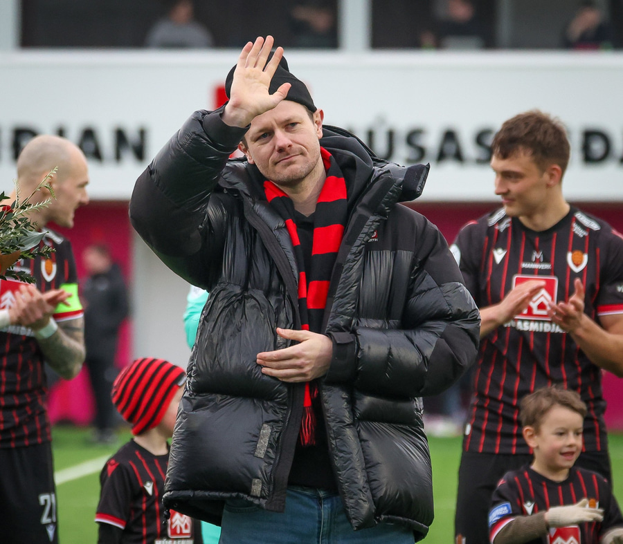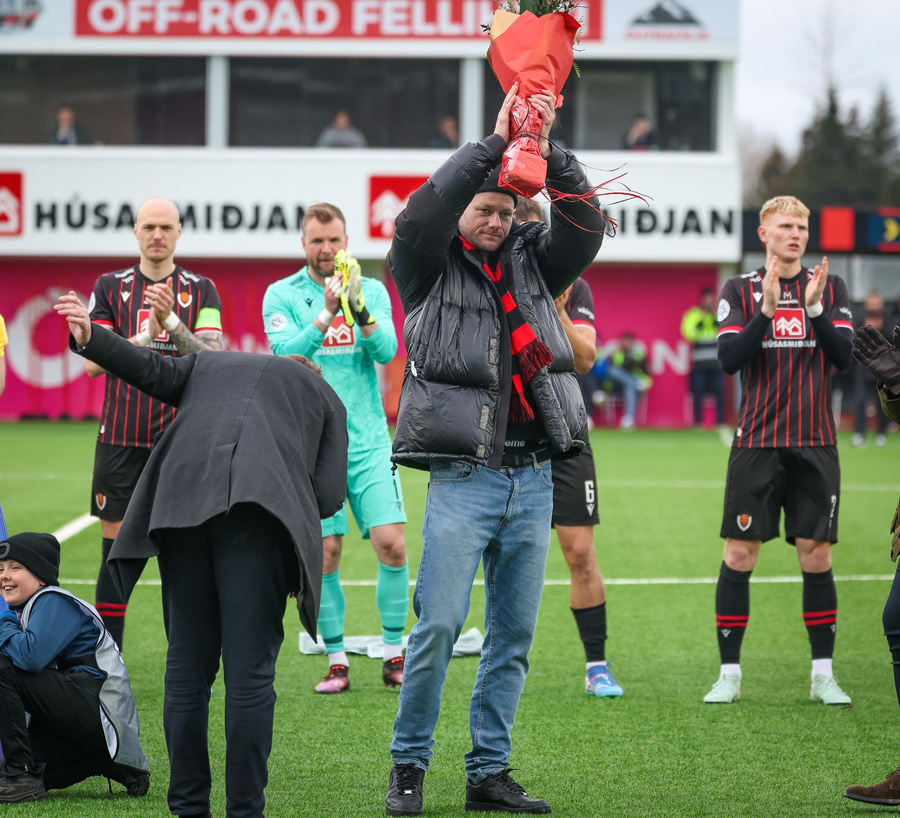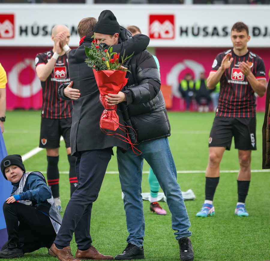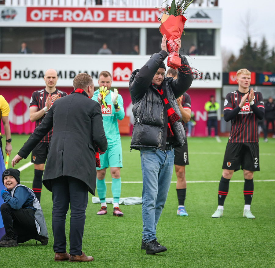 Halldór Smári Sigurðsson eða Herra Víkingur lagði skónna á hilluna frægu á dögunum. Hann er fyrir leik heiðraður af Víkingum með blómvendi og tilheyrandi.