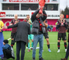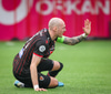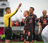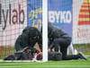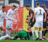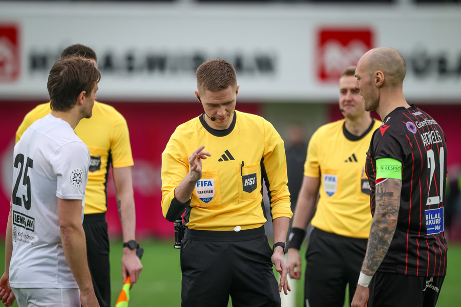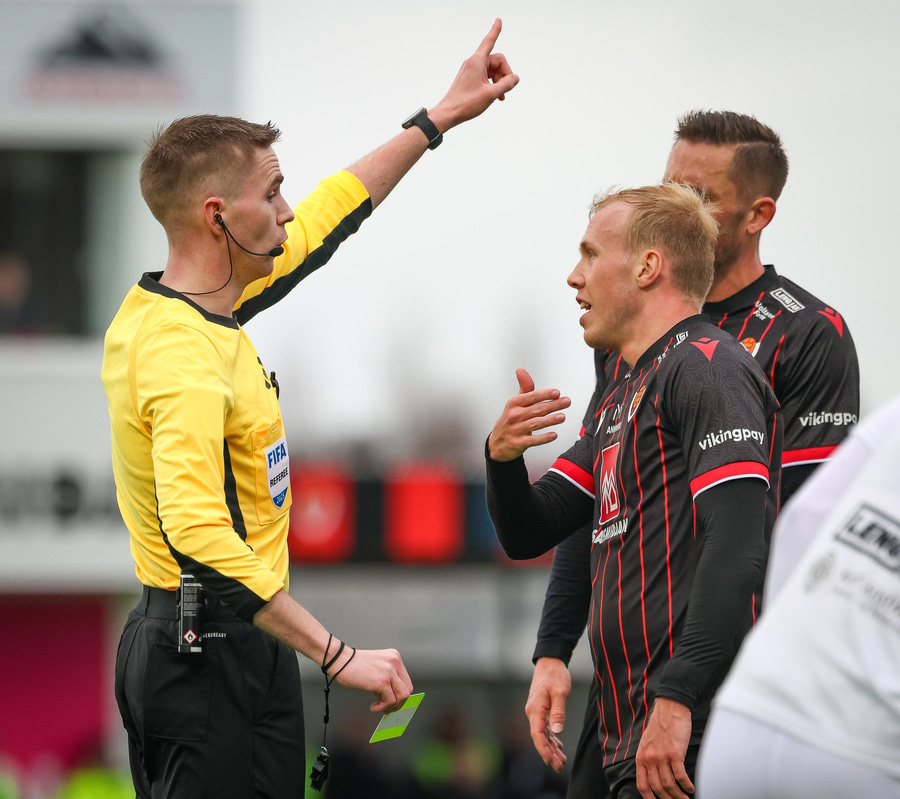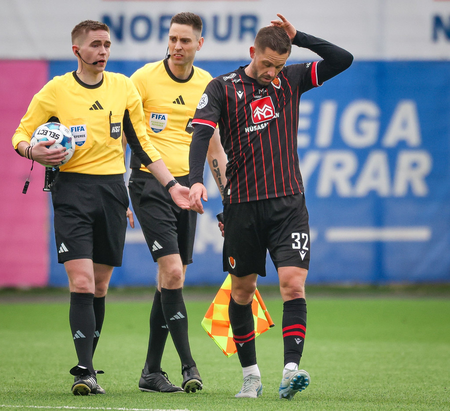 Valdimar snýr á Alex sem sparkar hann niður. Helgi í vasann og rífur upp gula spjaldið.