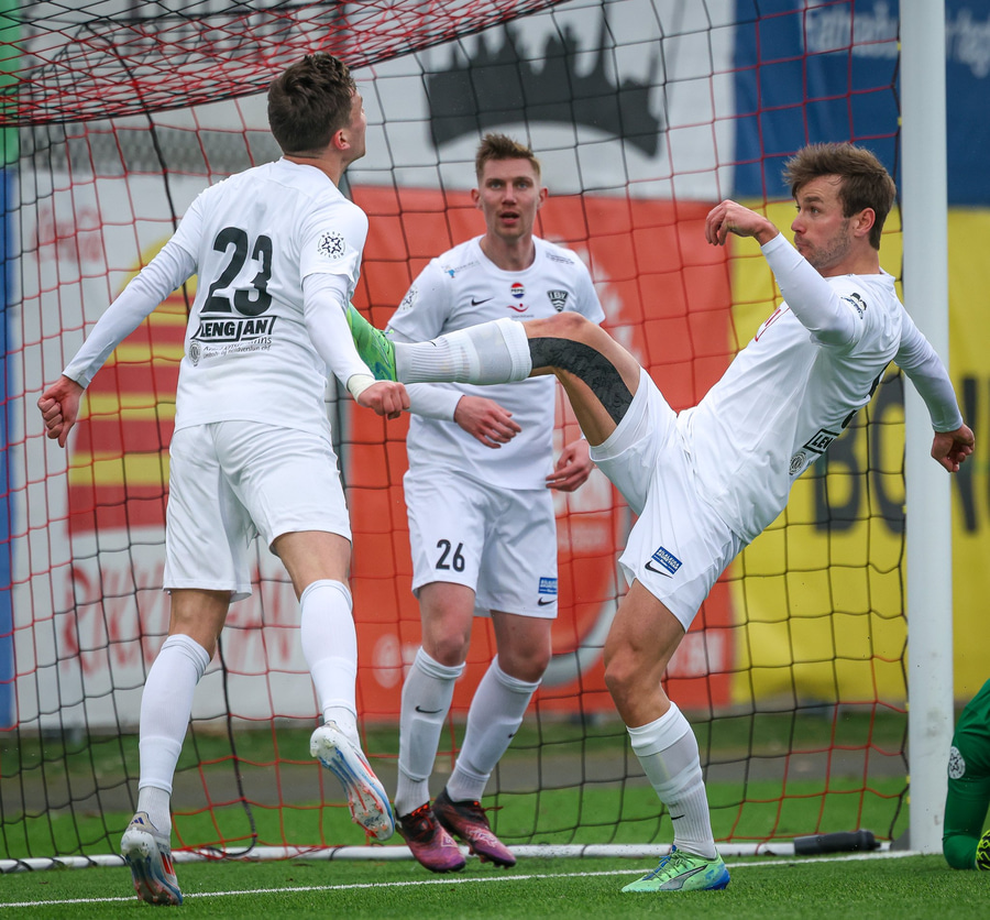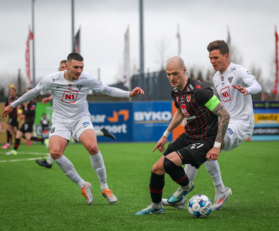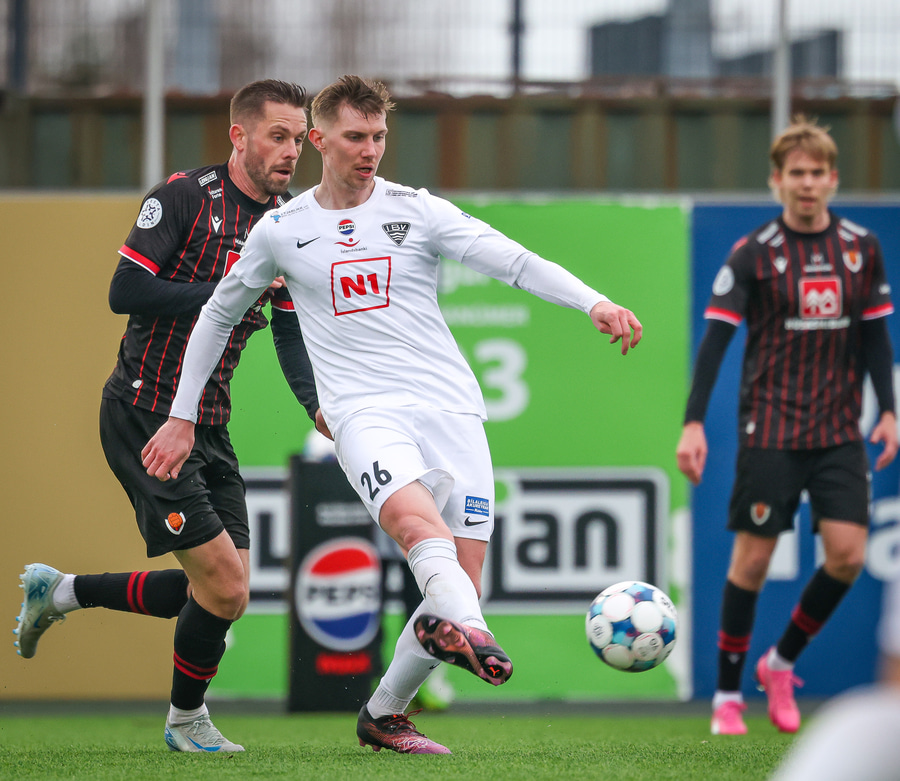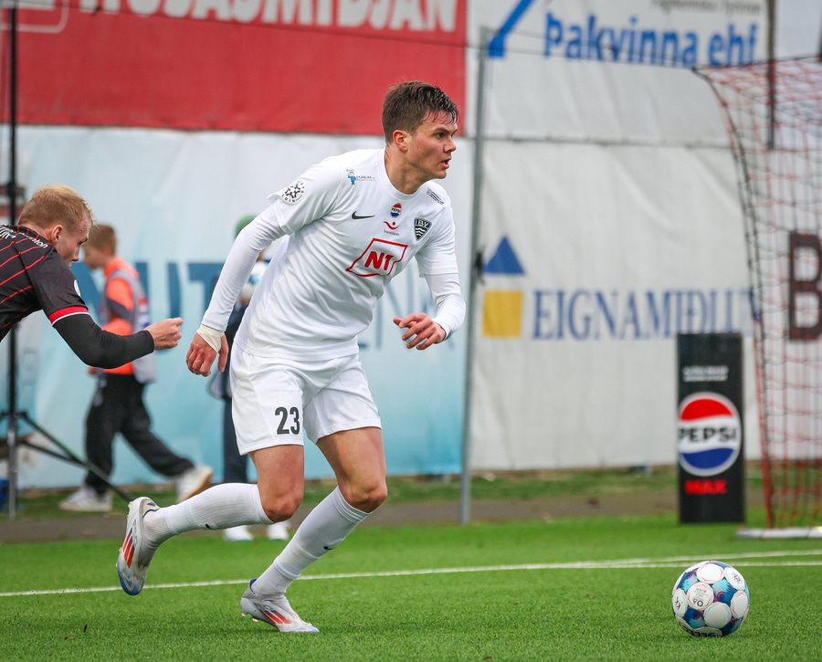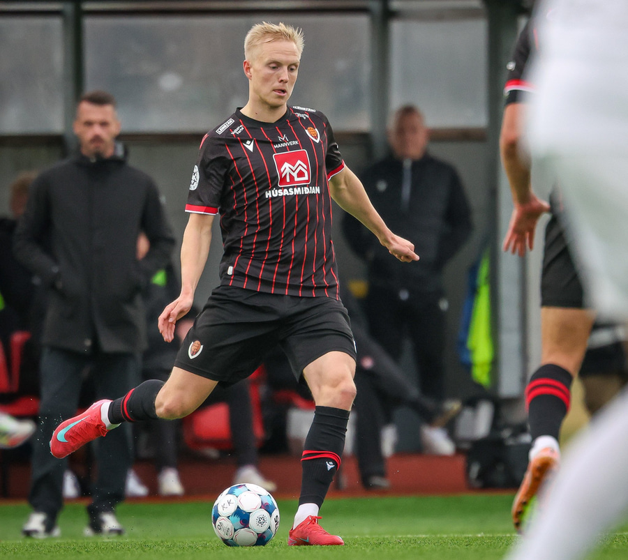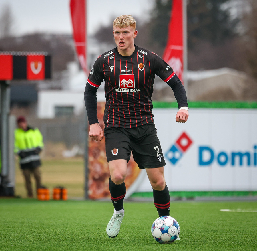 Felix Örn með gott hlaup upp vænginn og hættulega fyrirgjöf. Oliver gerir sig líklegan en Ingvar fyrri til á boltann.