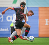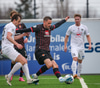 Boltinn dettur fyrir Viktor Örlyg vinstra megin í teignum eftir þunga sókn Víkinga en Marcel vel á verði og ver skot hans.