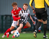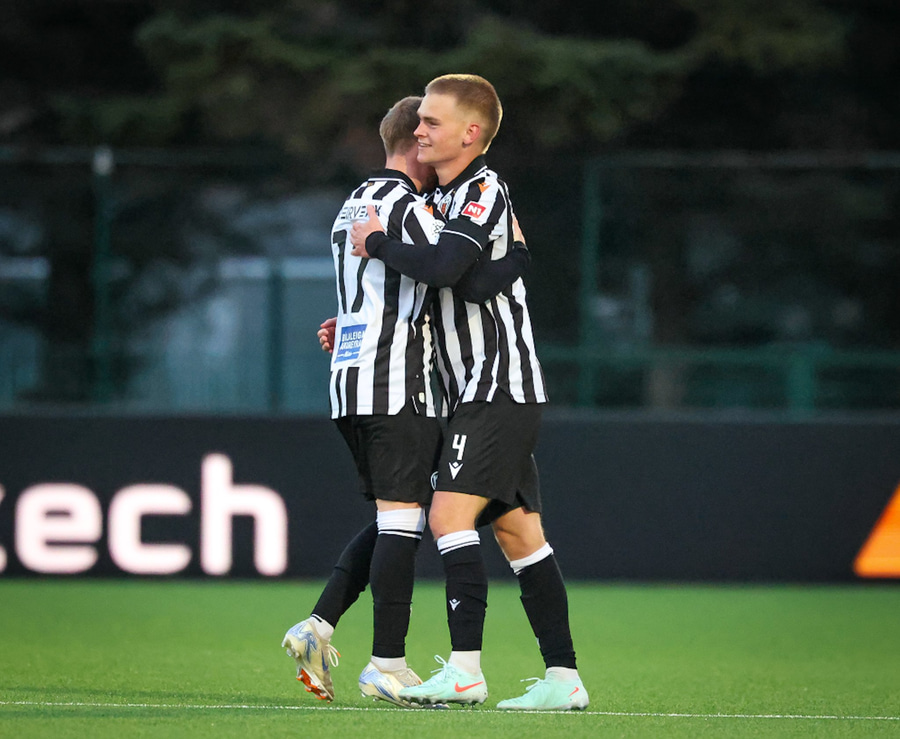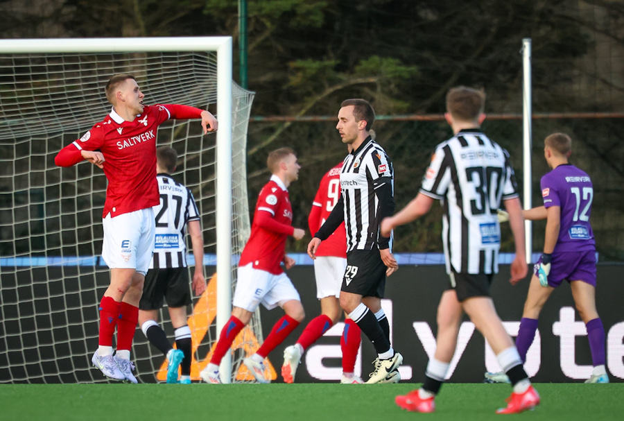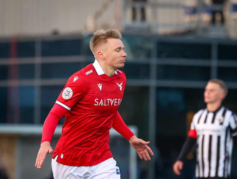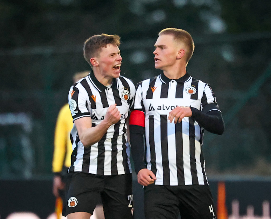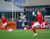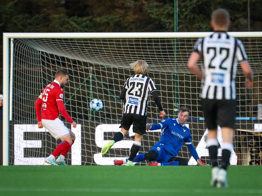 Gabríel er kominn út að endalínu og boltinn fer af Orra og endar hjá Luke Rae sem nær að skora.