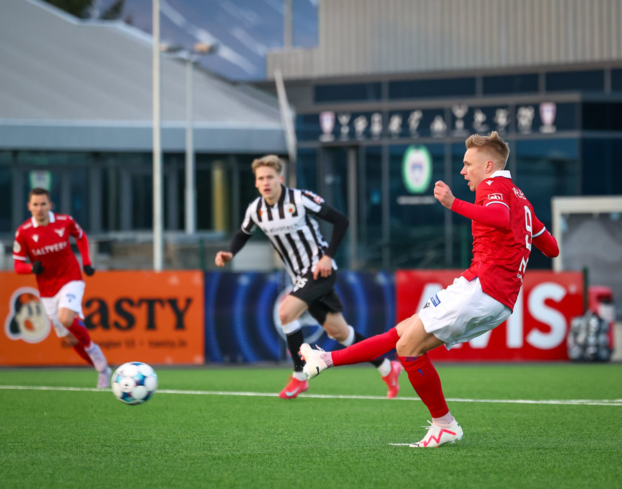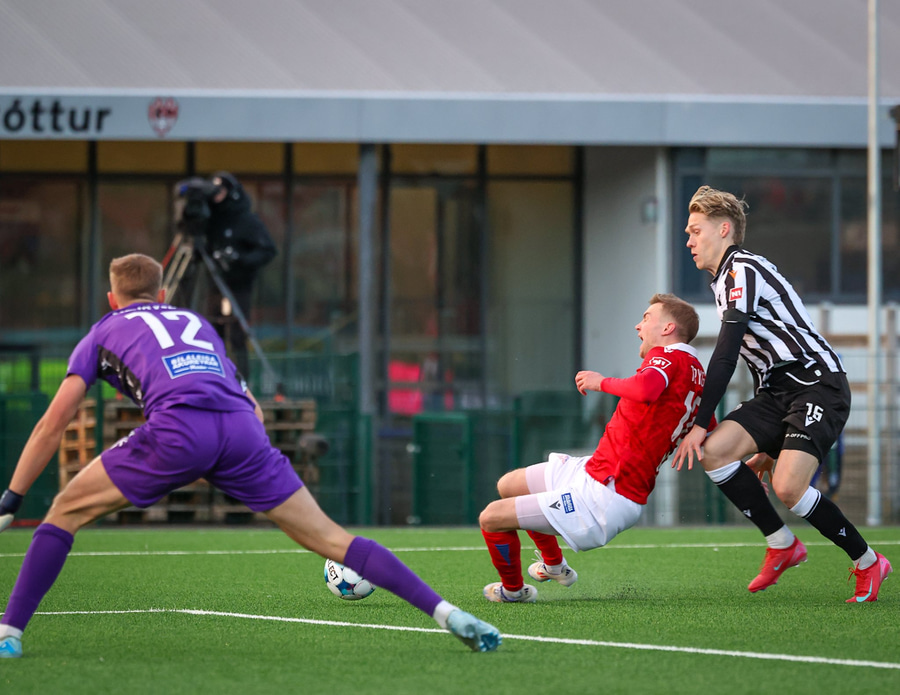 Atli Sigurjóns með bjartsýnistilraun af löngu færi. Ekkert galin tilraun en boltinn framhjá.