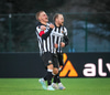 Patrick Pedersen er eins og gammur í teignum og skorar af stuttu færi, Róbert Elís í baráttu við hann en játar sig sigraðan!