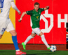 Benedikt Warén, sem er að mæta sínum gömlu félögum í dag, leggur boltann út á Samúel Kára sem reynir skot en það fer í Ásgeir Helga.