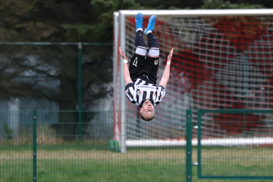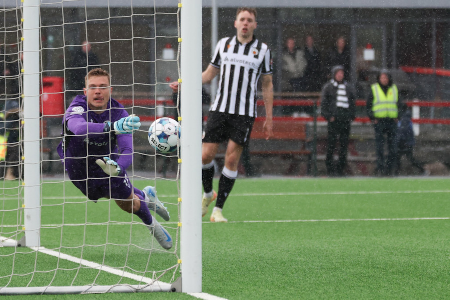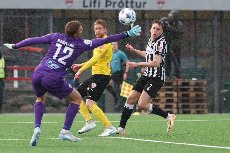 Hlynur Sævar leggur boltann fyrir markið þar sem Rúnar er í plássi. Hann nær skallanum að marki og Halldór ætti ekki að vera í miklum vandræðum. Hann er hinsvegar í smá vesenið því það tekur hann tvær tilraunir að grípa boltann en hann gerir það á endanum.