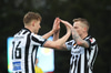 Skagamenn reyna að skalla boltann frá en hann lendir beint hjá Aroni Sig. Hann leggur þá boltan inn fyrir á Præst sem þarf að teygja sig og nær rétt aðeins að potaí boltann og hann lekur svo framhjá Árna.