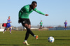 Oumar Diouck að komast í frábæra stöðu og það búast allir við fyrirgjöfinni en hann reynir að lauma boltanum á markið.