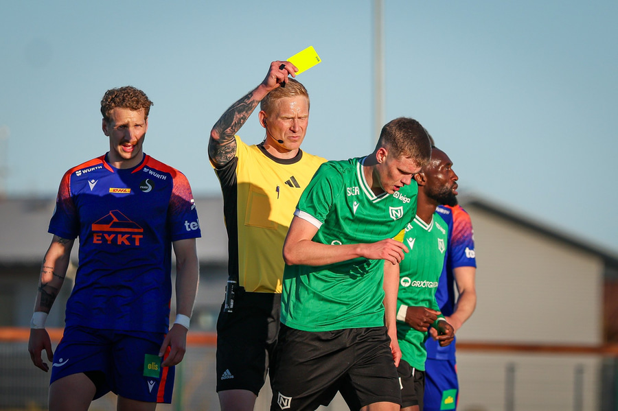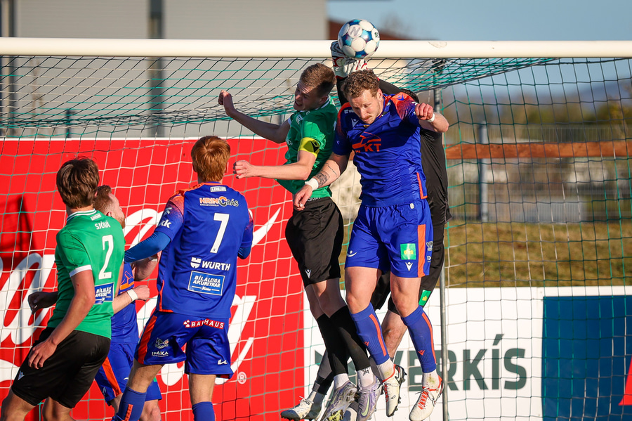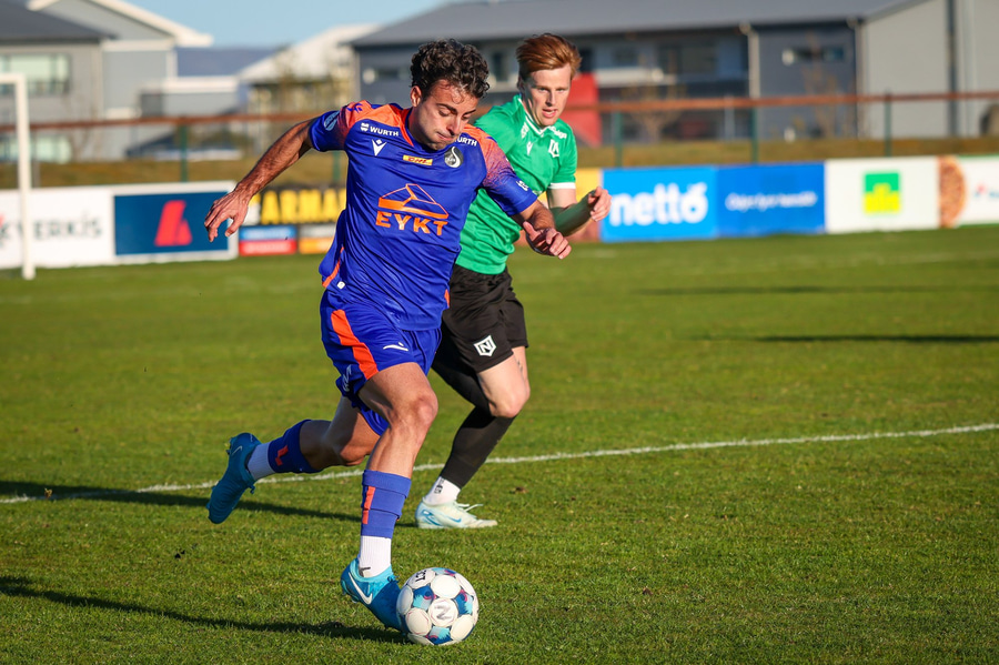 Amin Cosic hristir af sér tvo áður en hann reyndir að koam boltanum fyrir markið í átt að Dominik Radic en Ólafur Kristófer kemur út og hirðir boltann nokkuð þægilega.