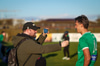 Fylkir tekur aukaspyrnu hratt beint í hendina á Arnleifi og spjaldið á loft.