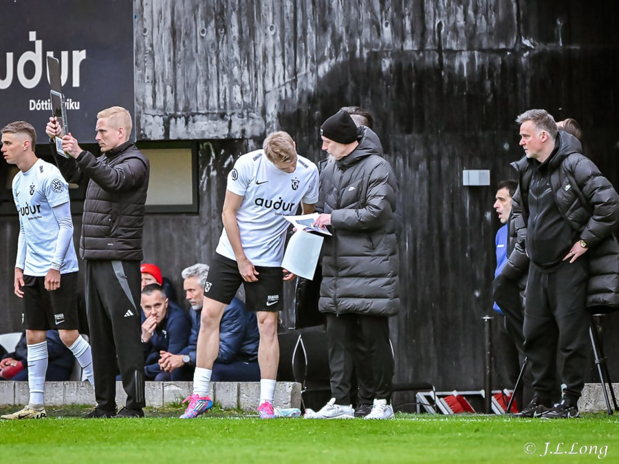 „Við höfum spilað fjóra leiki í deildinni og virðumst ekki geta spilað fótbolta nema við lendum undir. Byrjum alla leikina skelfilega, bæði varnar- og sóknarlega. Við getum ekki alltaf mætt á fótboltavelli og beðið eftir því að fá á okkur mark og ætla þá að spila. Við þurfum að hugsa okkar gang í þessu. Það þýðir ekki að mæta hingað á Akureyri og vera pínulitlir og ætla svo að gera eitthvað þegar við erum komnir með bakið upp við vegg. Við þurfum að gjöra svo vel að spila einhvern fótbolta og verjast eins og lið."