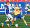 Stubbur tekur Róbert niður inn á teignum. Sýndist það vera Vuk sem fann Róbert í gegn, hann á svo snertingu til hliðar, Stubbur reynir við boltann en nær bara í Róbert.