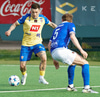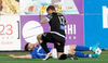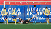 Stubbur les Isra, ekki góð spyrna en þó vel varið!