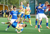 Grímsi fellur við eftir návígi við Kyle inn á teignum, einhver vítaköll en það var ekkert í þessu