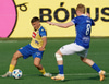 Í kjölfarið sýnir Bjarni mjög lipra takta en fyrirgjöfin er of há og fer yfir Viðar.
