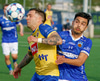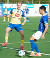 Jakob með hættulega fyrirgjöf sem Kyle les.