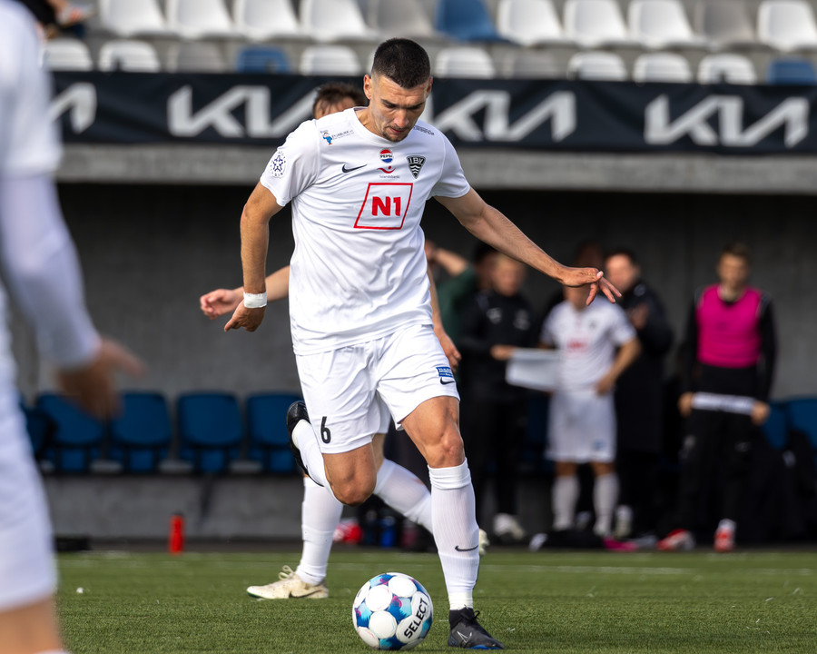 Arnór Ingi kemur með boltann inn á teiginn á Sverri sem skallar boltann fyrir markið á Jovan Mitrovic. Hann tekur við honum og nær skotinu sem fer langt yfir.