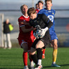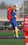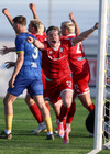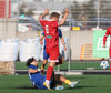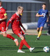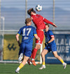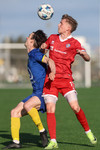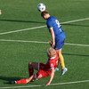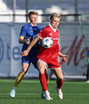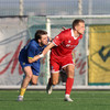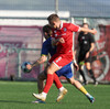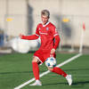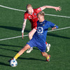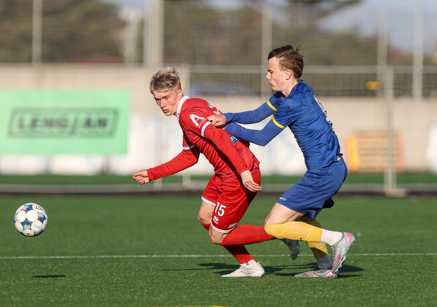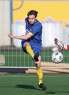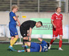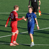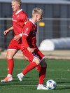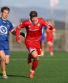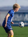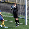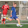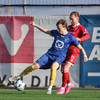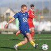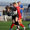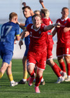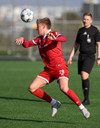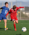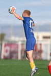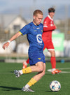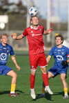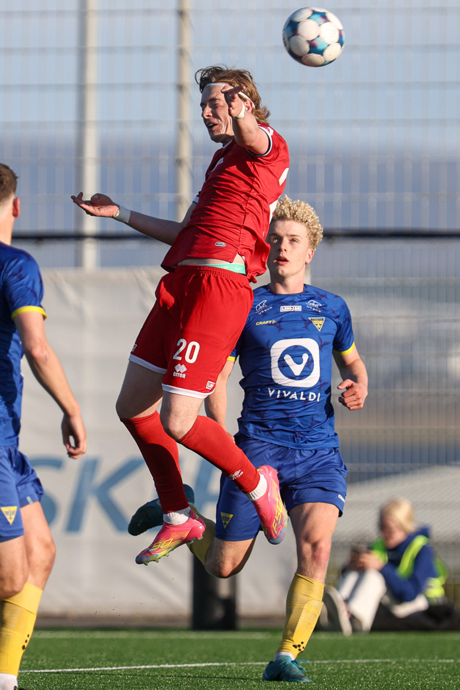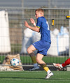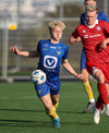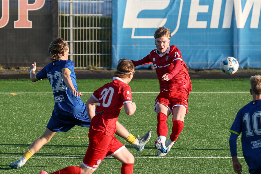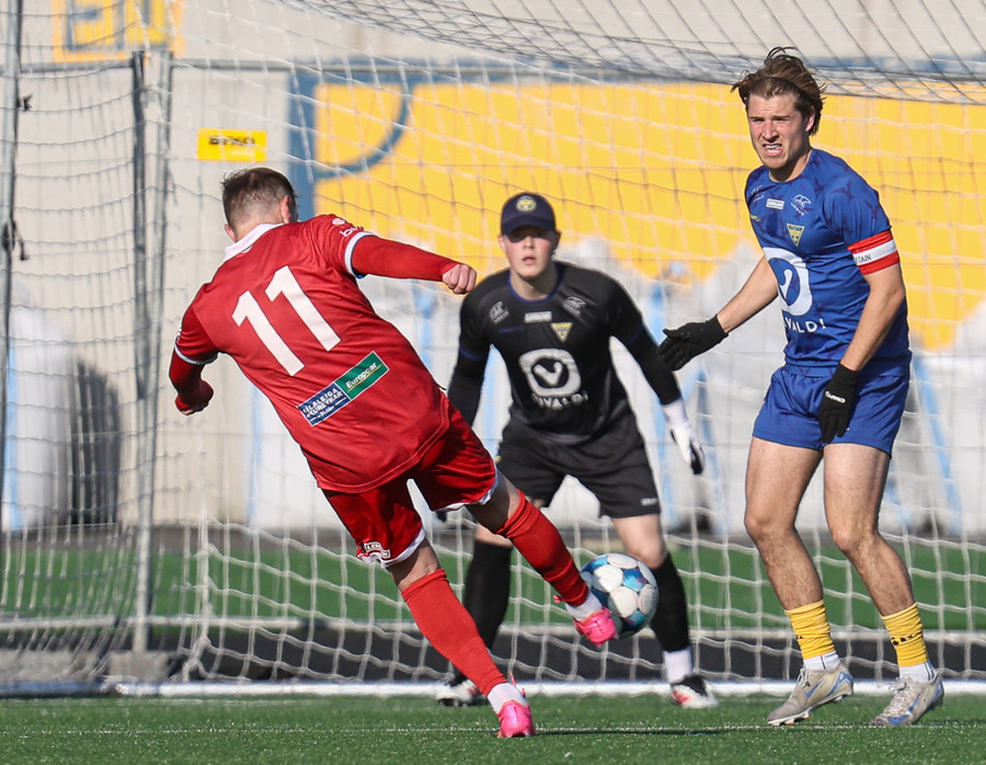 Hættulegur bolti frá Kristófer Melsted en Axel kemst ekki í boltann inn á markteignum.