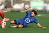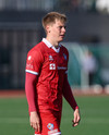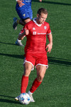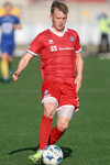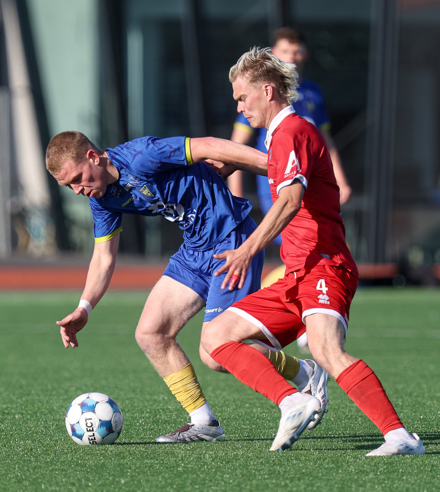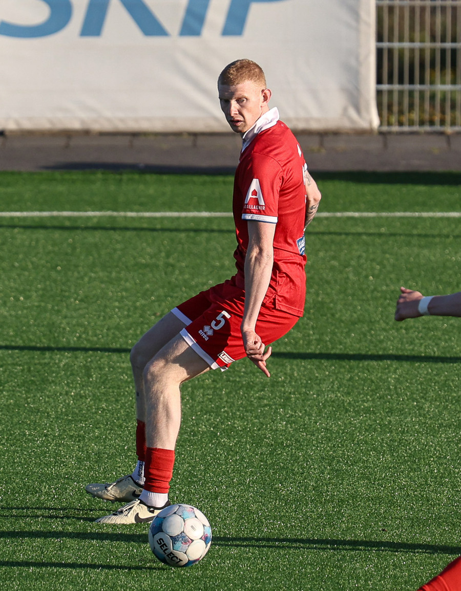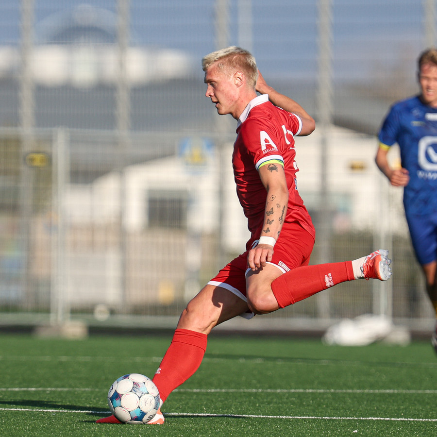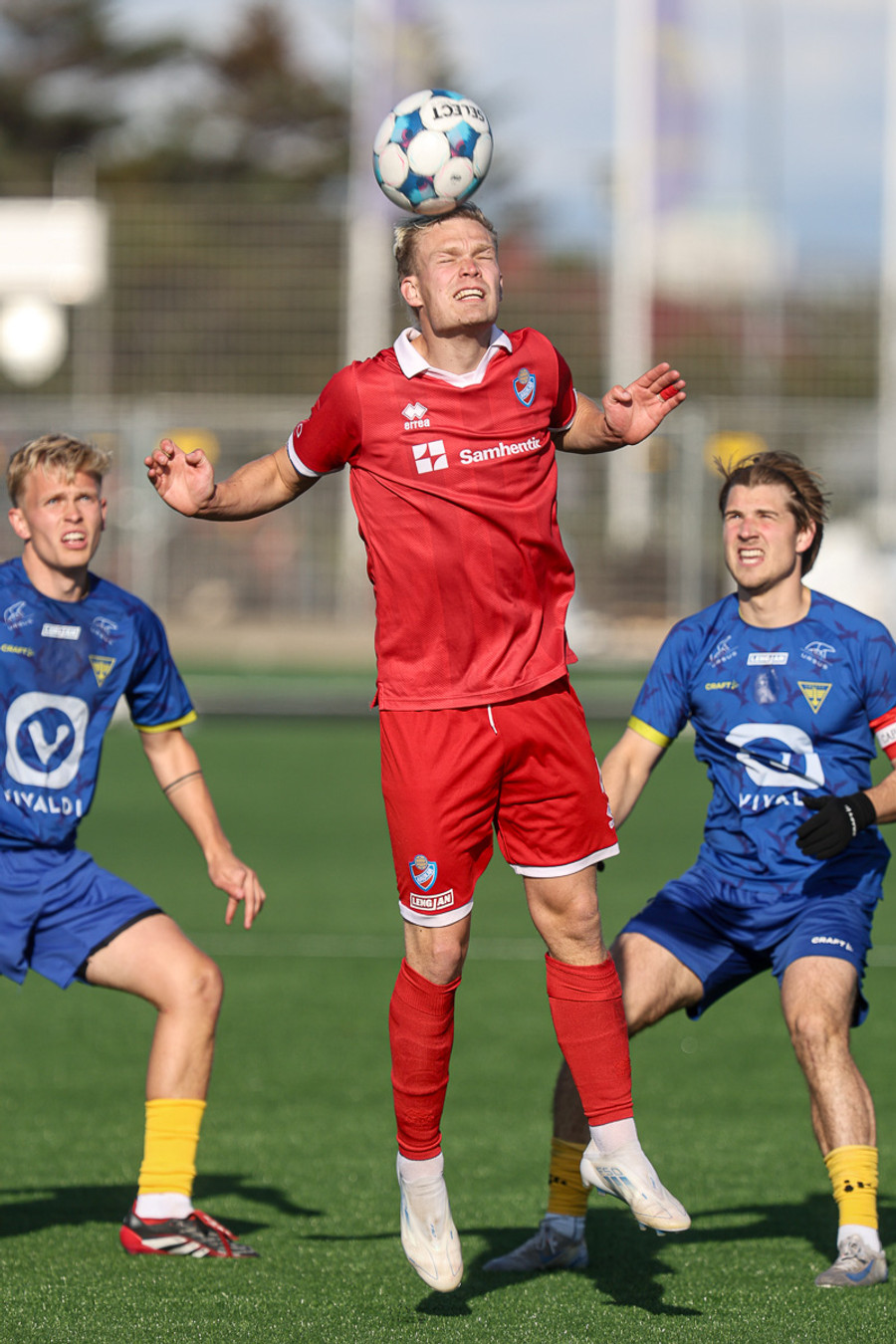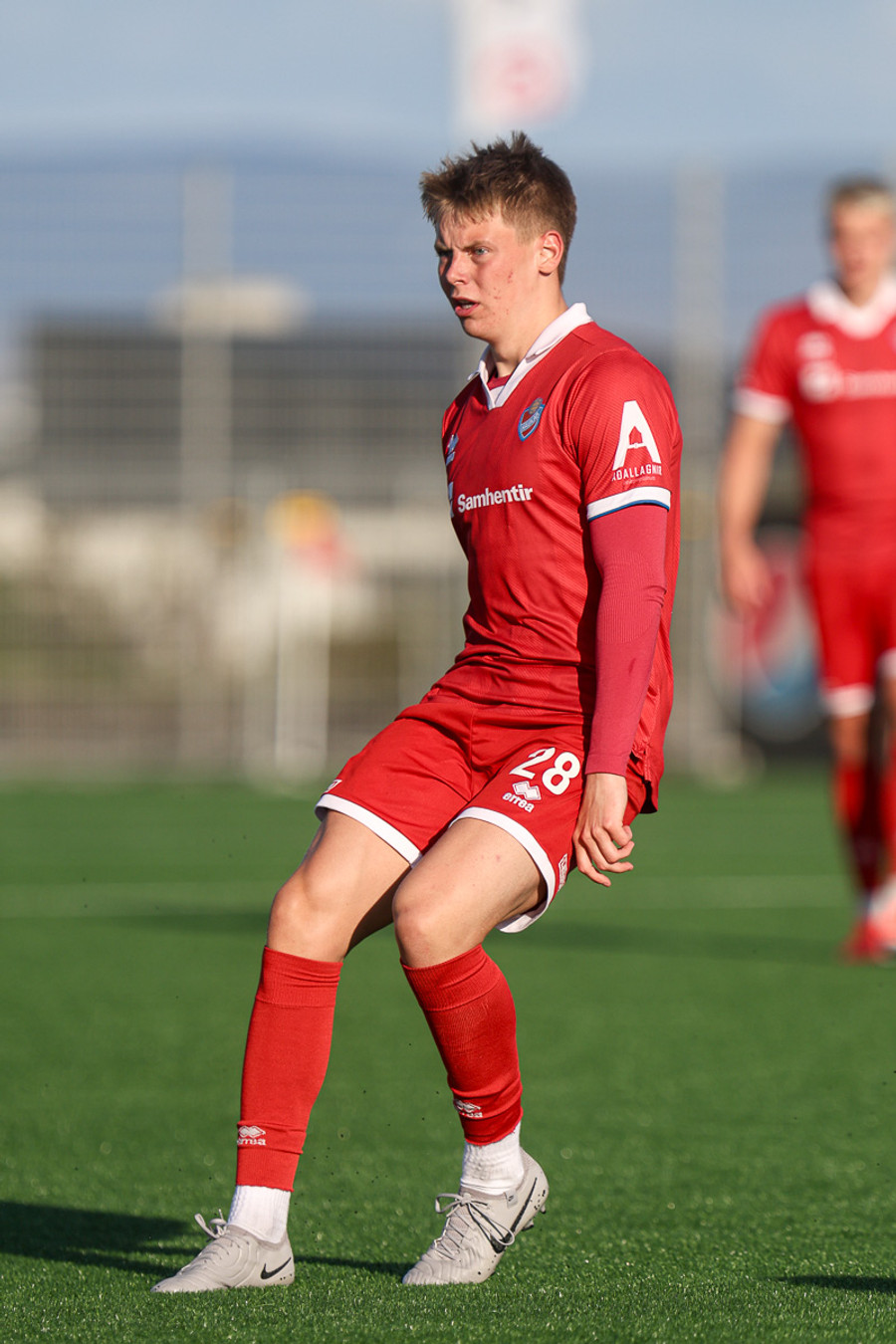 Brýtur á Fannari Óla við D-bogann eftir slaka sendingu frá Alexander.