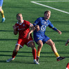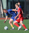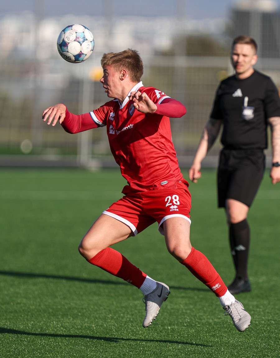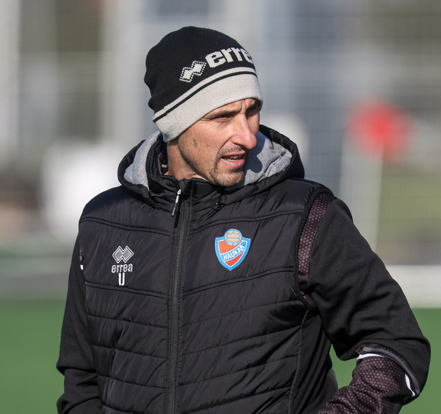 Kostiantyn Iaroshenko með flotta fyrirgjöf sem Dagur verst vel. Haukar fá horn.