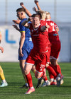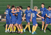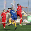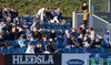 Bláklæddir Seltirningar og rauðir Hafnfirðingar ganga inn á völlinn og Við Gróttu með Bubba er í hátalarakerfinu.