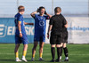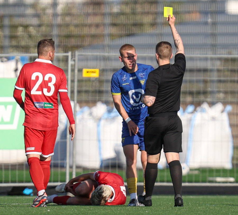 Öskrar Gaui á Brynjar dómara, mjög ósáttur við eitthvað sem ég missti af, kannski að boltanum var sparkað í burtu, en það er Gaui sem fær spjald.
