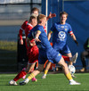 Kristófer Dan eitthvað pirraður út í Fannar Óla og Brynjar Þór þarf að stilla til friðar. Létt hrinding frá Fannari.