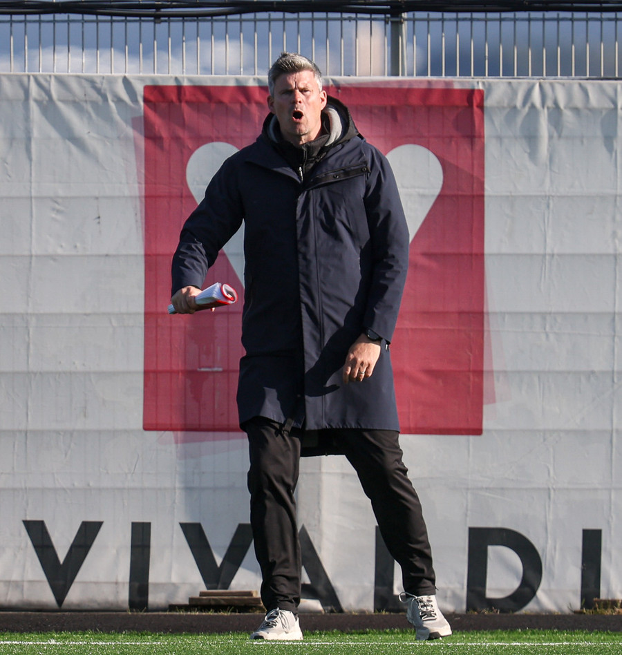 Brynjar lyftir hendinni og stöðvar leikinn.