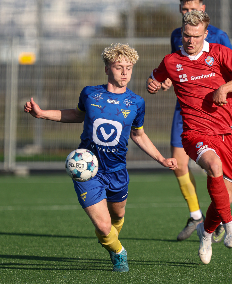 Kristófer Melsted með frábæra sendingu út í teiginn, finnur Marciano sem á skot sem Heiðar Máni gerir frábærlega í að verja, vel lesið!