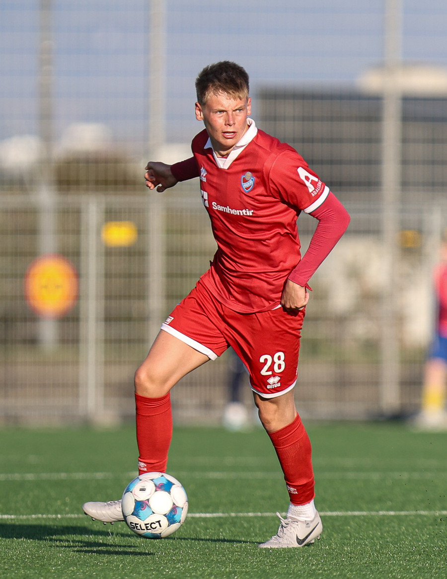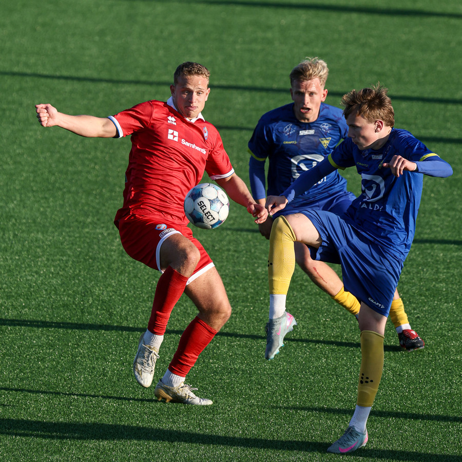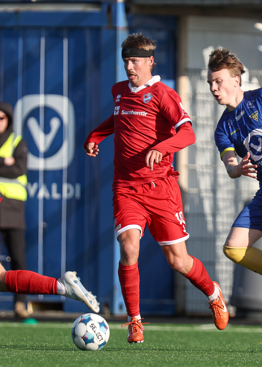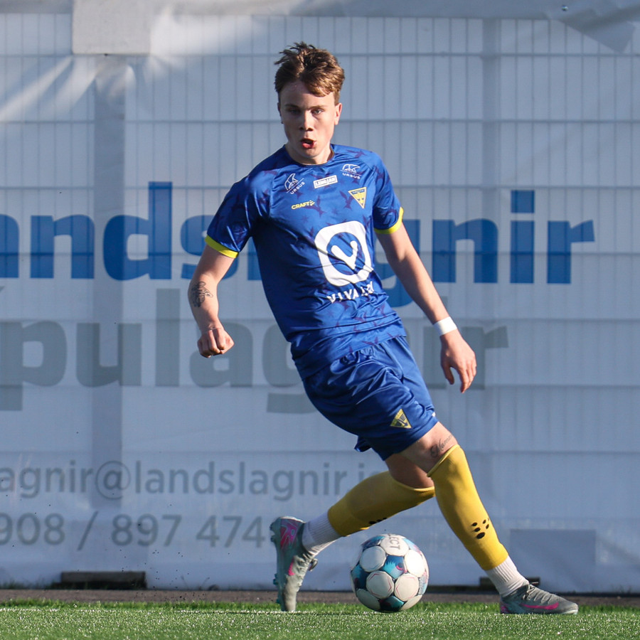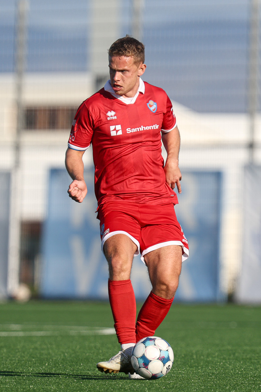 Daði Snær Ingason með lipra takta og lætur vaða en skotið í markmann.