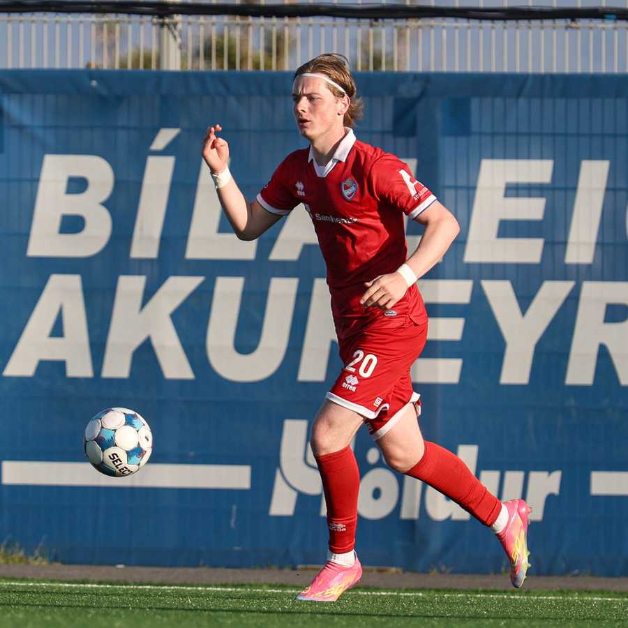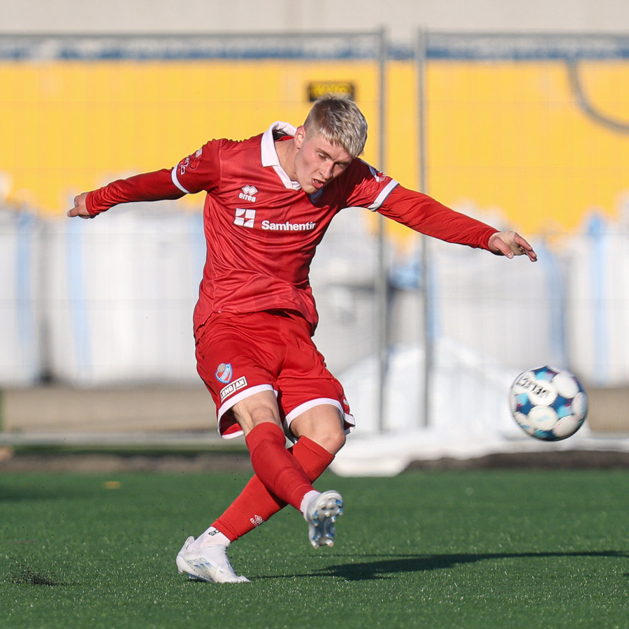 Dagur hreinlega með skottilraun hægra megin við teiginn sem Heiðar Máni slær yfir markið. Dómararnir missa af því, benda á markspyrnu og svo er flautað til hálfleiks.