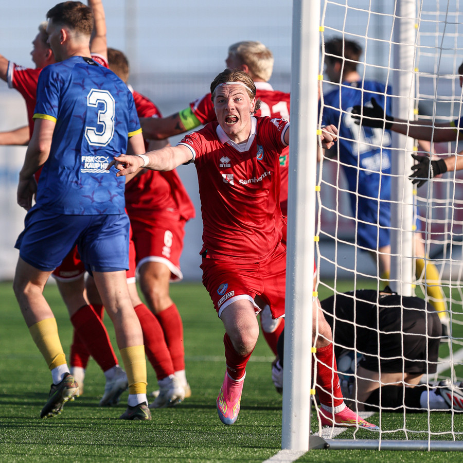 Upp úr nánast engu, innkast úti vinstra megin, Grímur fær boltann, lætur vaða vinstra megin úr teignum, hittir boltann vel með vinstri og Grótta leiðir!