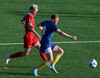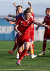 Dagur svo með flotta fyrirgjöf hinu megin sem er nálægt því að finna samherja.