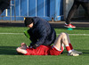 Grímur fær aðhlynningu og Haukar halda svo áfram að sækja.