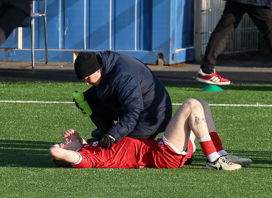 Axel fer niður, Tómas Atli virðist fara í hann en ekkert dæmt. Gróttumenn sannfærðir og allur bekkurinn rís upp og kallar eftir víti.