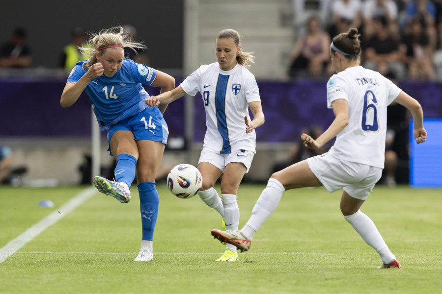 Finnar skalla frá og fá á einhvern furðulegan hátt innkast þrátt fyrir að hafa sett boltann sjálfar út af.