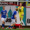 Þarna var Jökull stálheppinn í marki Aftureldingar.