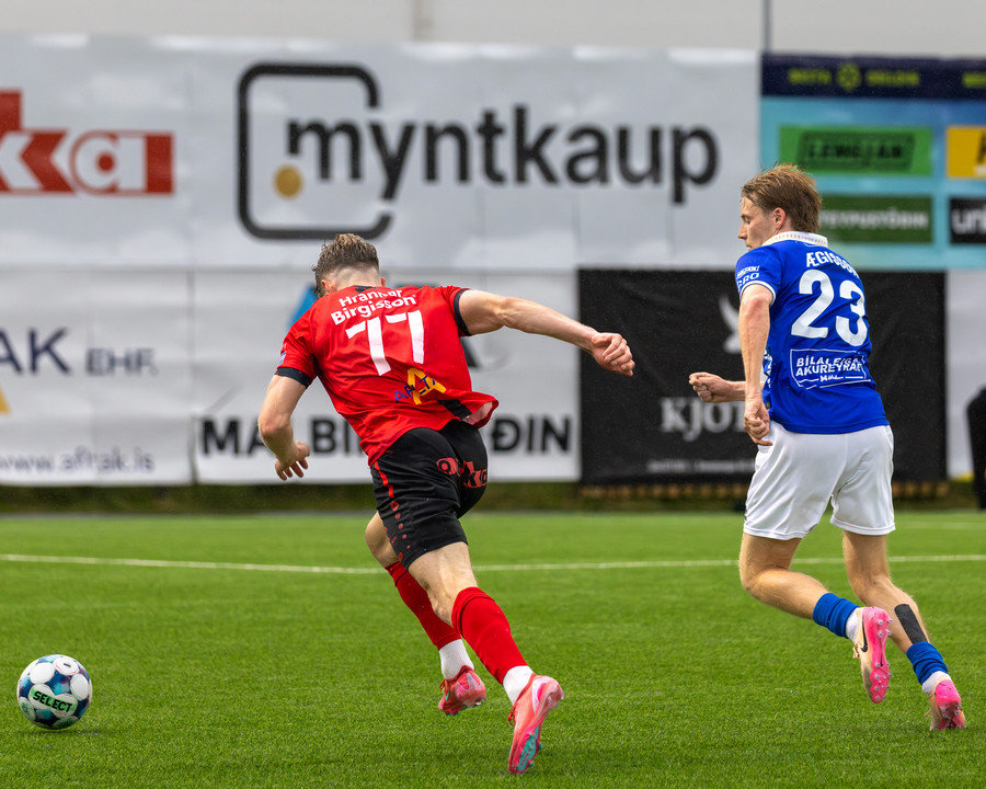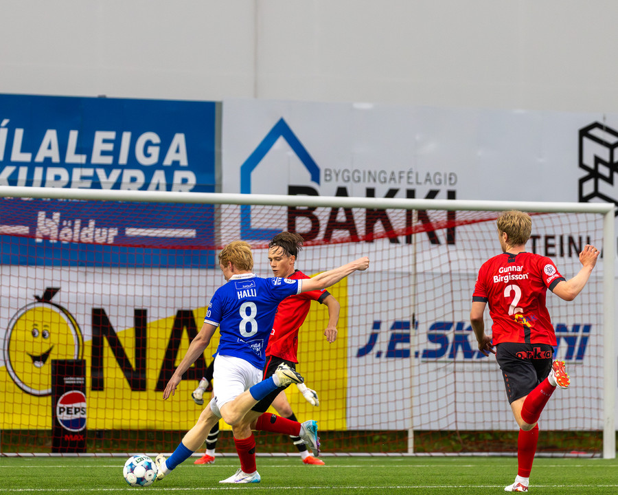 Þorri Stefán gerir mjög vel á boltanum og kemur honum upp á Róbert Hauks. Róbert tekur hann framhjá Jökli í markinu en hann missir boltann of langt frá sér og boltinn fer aftur fyrir í markspyrnu.